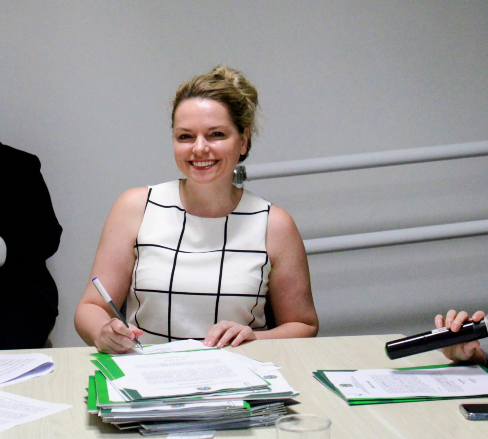 A Coordenadora Geral de Ensino do Campus Alegrete, Rosangela Mariotto, esteve presente na cerimônia e participou do ato de posse dos servidores do Campus.