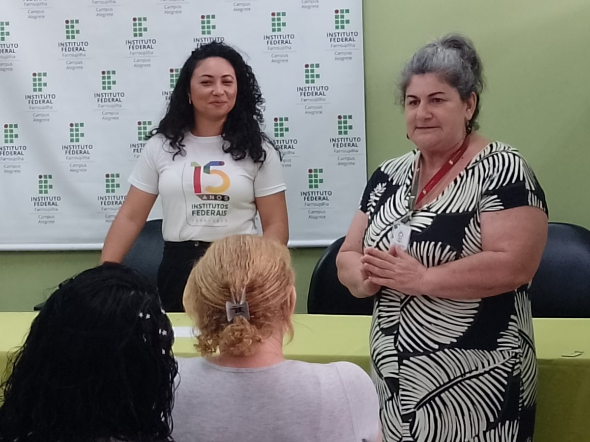 A solenidade ainda contou com a servidora Rosângela Bittencourt Mariotto diretora geral substituta do IFFar; Denise Valduga Batalha coordenadora institucional do Programa Mil Mulheres, Douglas Dalla Nora Diretor de Pesquisa, Extensão e Produção; Aline Bosak dos Santos coordenadora de extensão e Aires da Silva Dorneles coordenador adjunto do Programa Mil Mulheres no IFFar Campus de Alegrete.