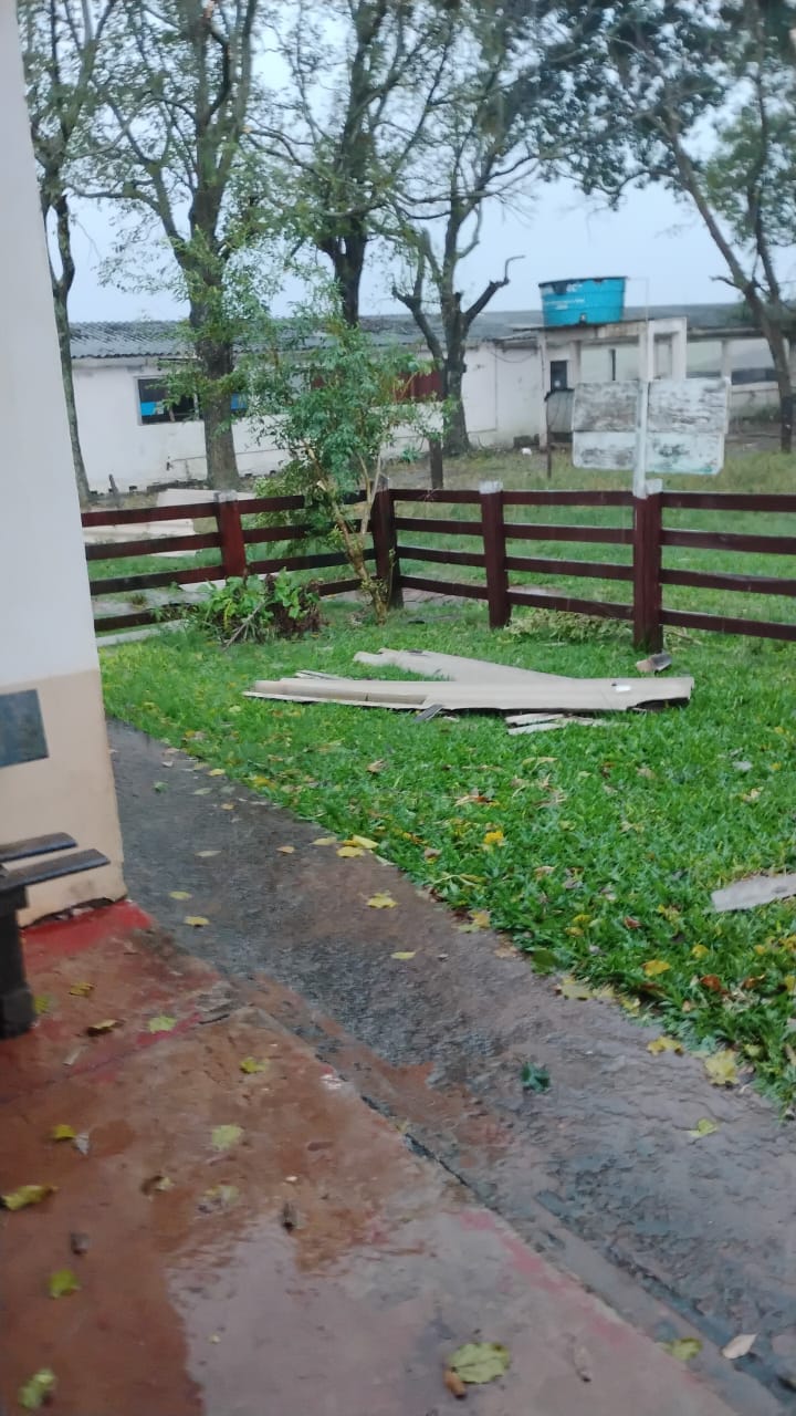 Na manhã desta quinta-feira, por volta das 8h, um forte temporal atingiu o IFFar – Campus Alegrete, provocando diversos danos estruturais. Os ventos intensos e a chuva volumosa causaram alagamentos em prédios, destelhamentos e quebra de vidros em diferentes setores da instituição.