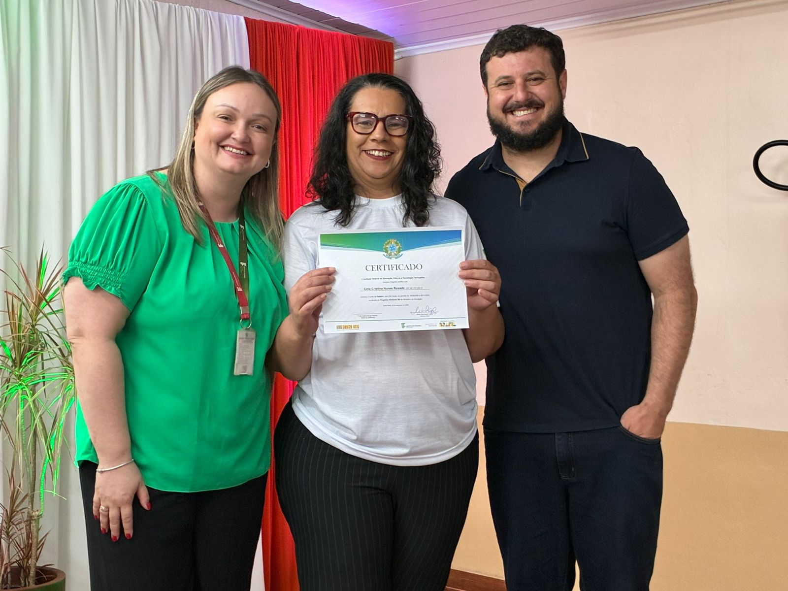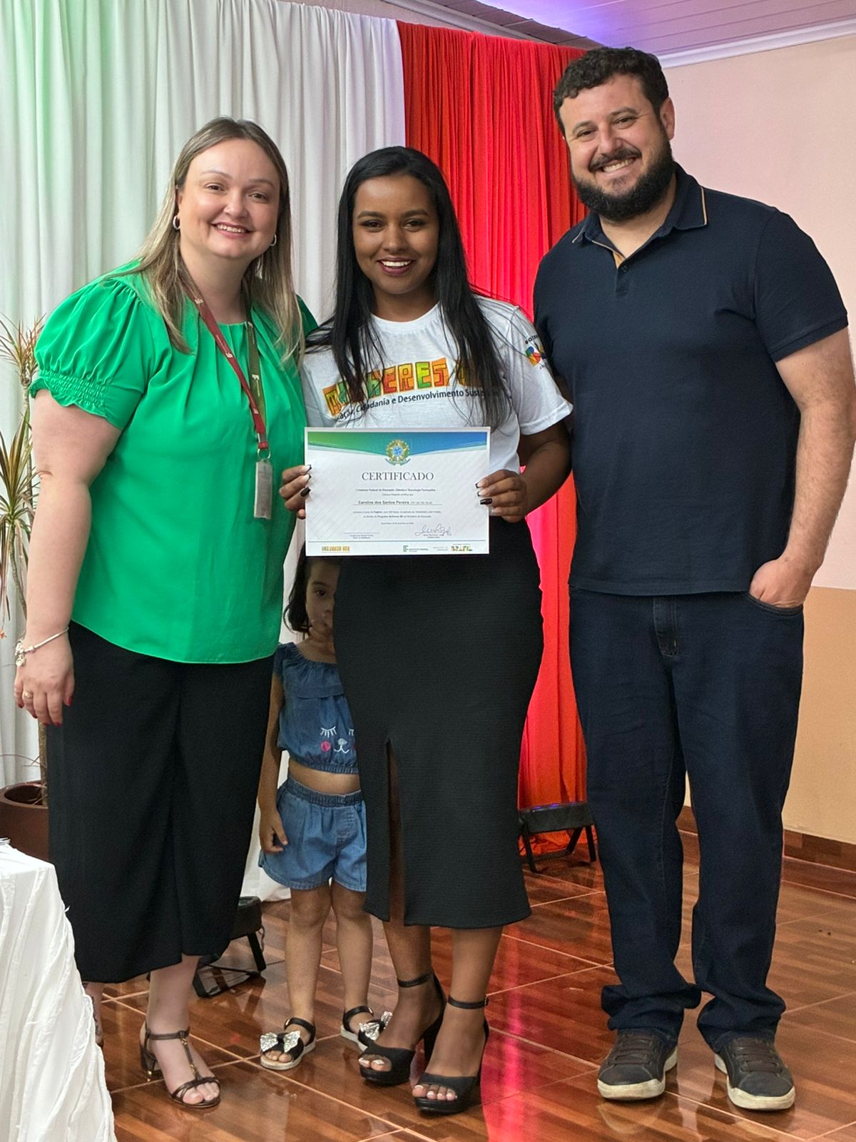A cerimônia de certificação foi realizada no auditório da EEEB Dr. Lauro Dornelles e contou com a presença de familiares das formandas, professores e membros da equipe diretiva do campus. O evento destacou o compromisso do IFFar em ampliar oportunidades de formação profissional e fortalecer iniciativas que impactam diretamente a vida das mulheres do município.