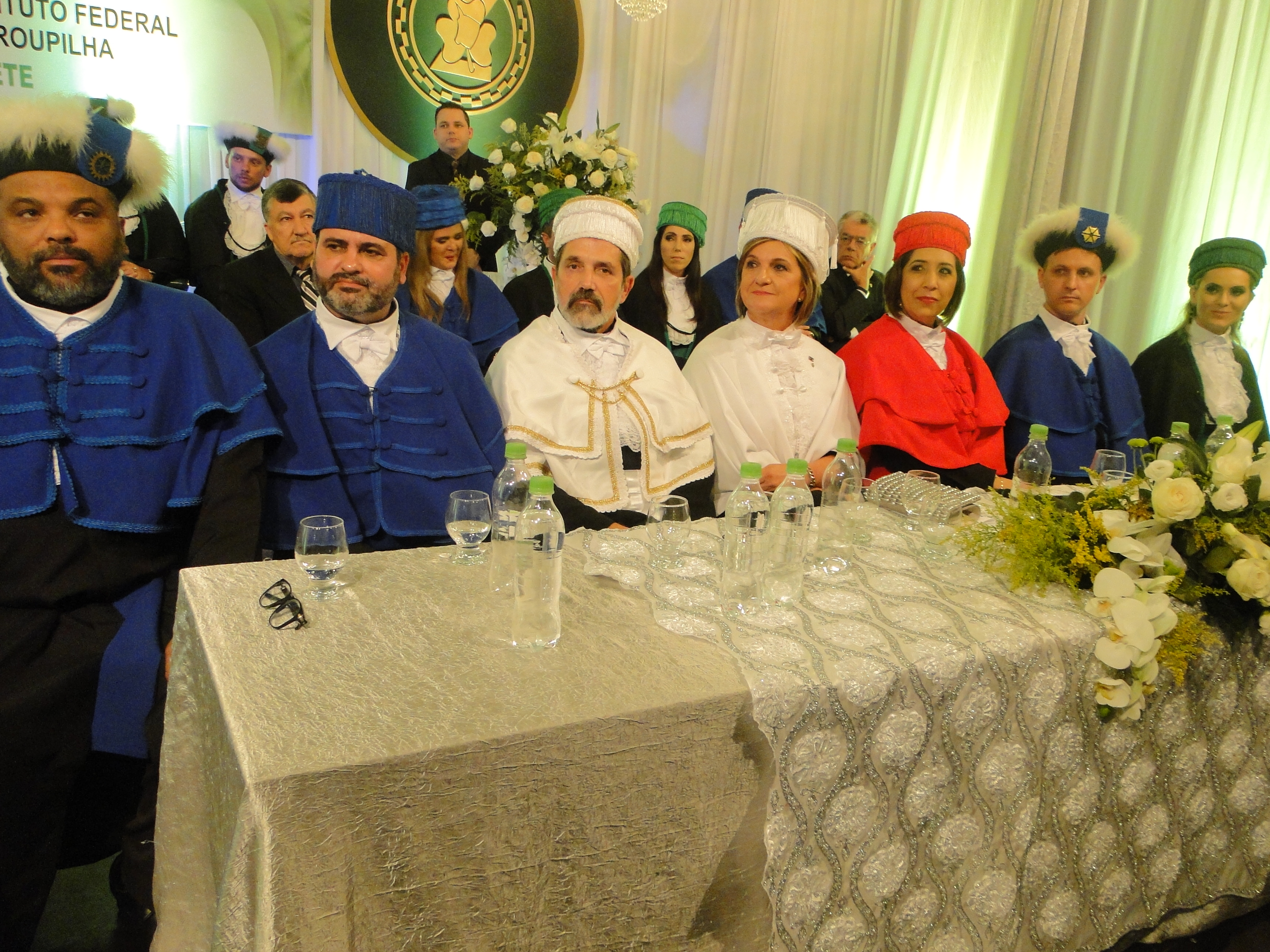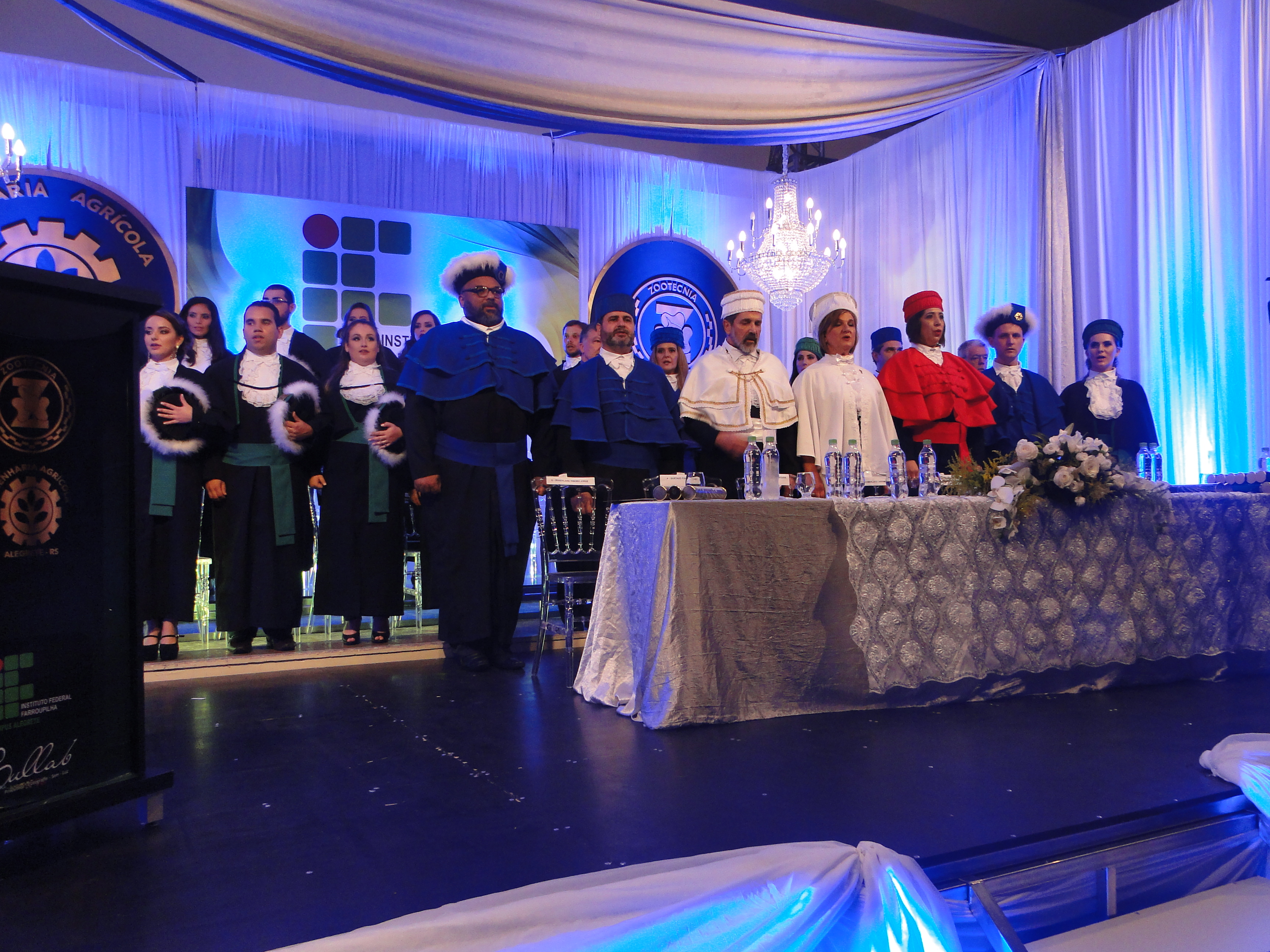 Compuseram a mesa de honra a Reitora do IF Farroupilha, Carla Comerlato Jardim e o Reitor da Universidade Federal do Pampa, Marco Antônio Fontoura Hansen; os Diretores do IF Farroupilha e da Unipampa, ambos Campus Alegrete, Ana Paula da Silveira Ribeiro e Gustavo Fuhr Santiago; o Pró-Reitor de Graduação da Universidade Federal do Pampa, Ricardo Howes Carpes; além dos Coordenadores do curso de Engenharia Agrícola, Edenir Luis Grimm (IF Farroupilha) e Roberlaine Ribeiro Jorge (Unipampa) e do curso de Zootecnia, Anna Carolina Cerato Confortin. Também fizeram parte da mesa de honra o Paraninfo e a Patronesse do curso de Engenharia Agrícola, Roberlaine Jorge (já nomeado) e Ana Carla dos Santos Gomes; o Paraninfo e a Patronesse do curso de Zootecnia, Emmanuel Veiga de Camargo e Patrícia Alessandra Meneguzzi Metz Martins e os representantes dos Conselhos Regionais de Medicina Veterinária e Zootecnia (CRMV) e de Engenharia e Agronomia (CREA) do Rio Grande do Sul, José Arthur de Abreu Martins e Jorge Adão Machado Silva, respectivamente.