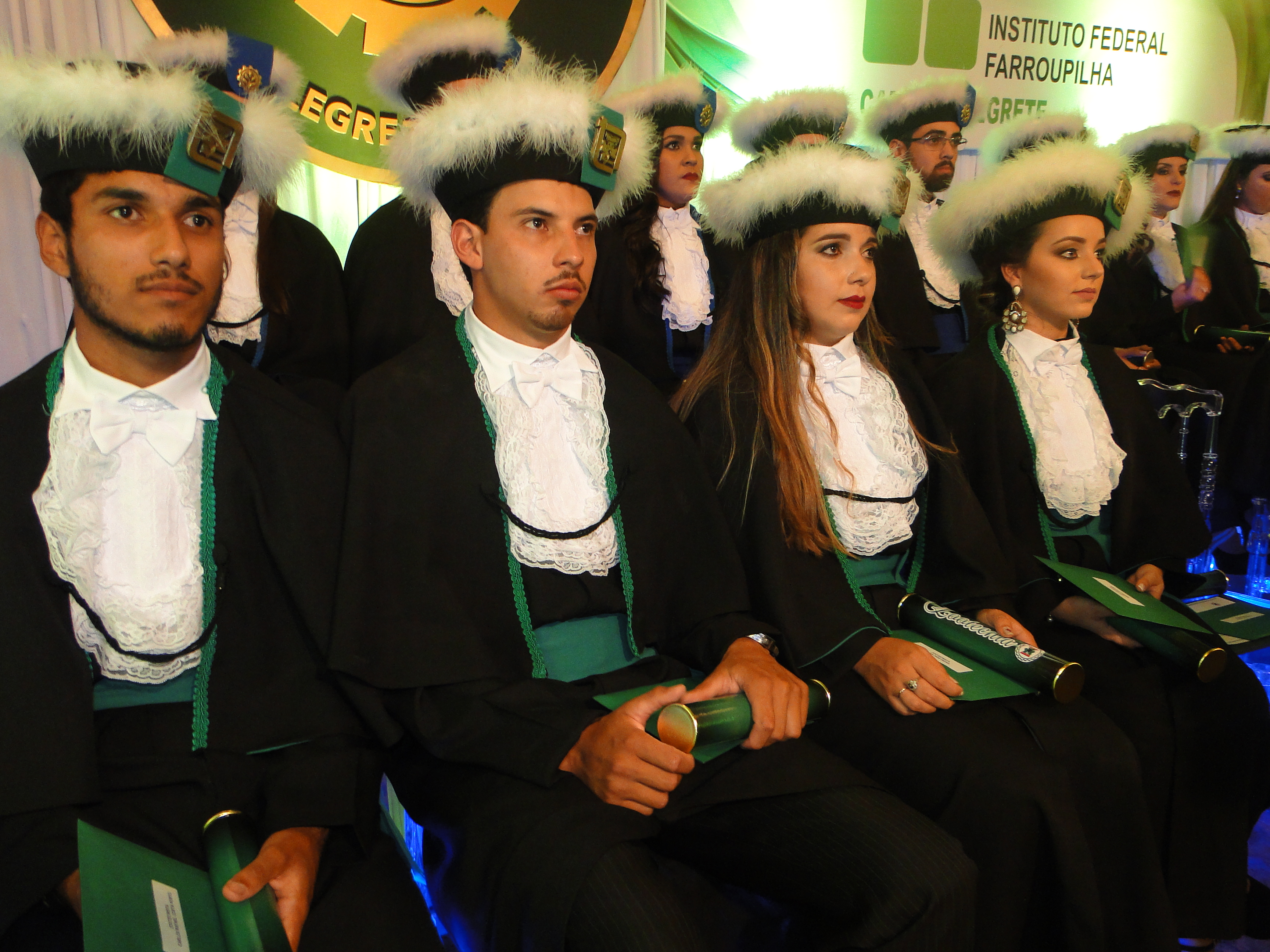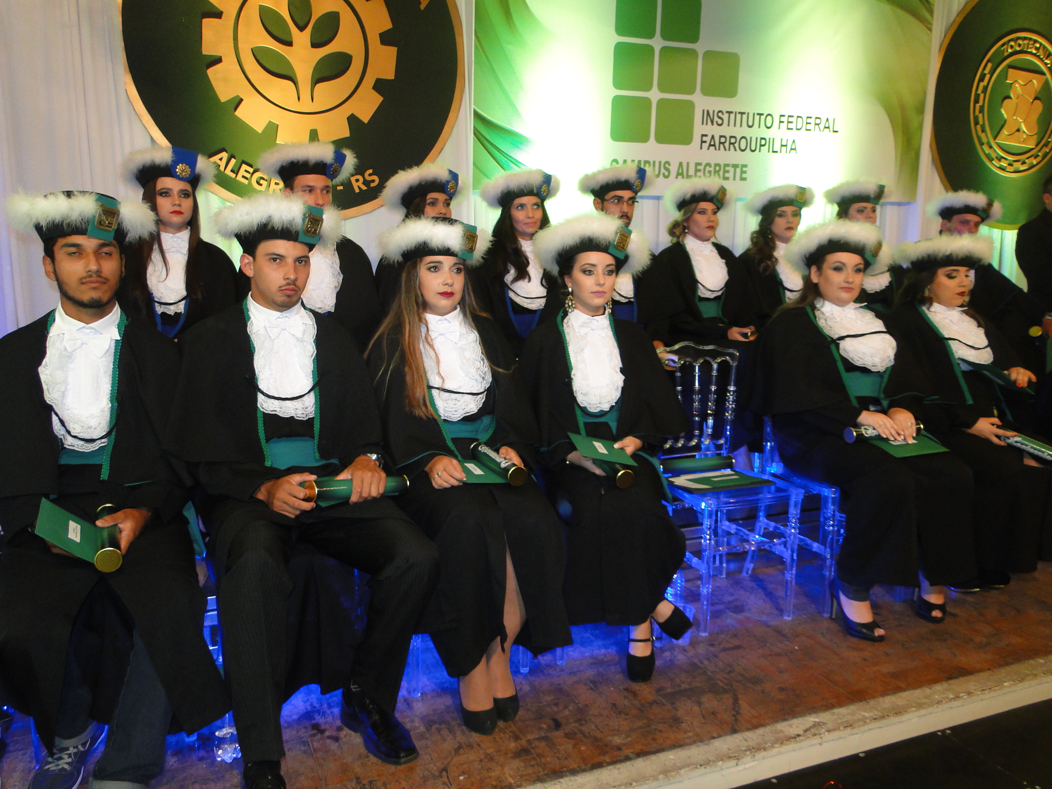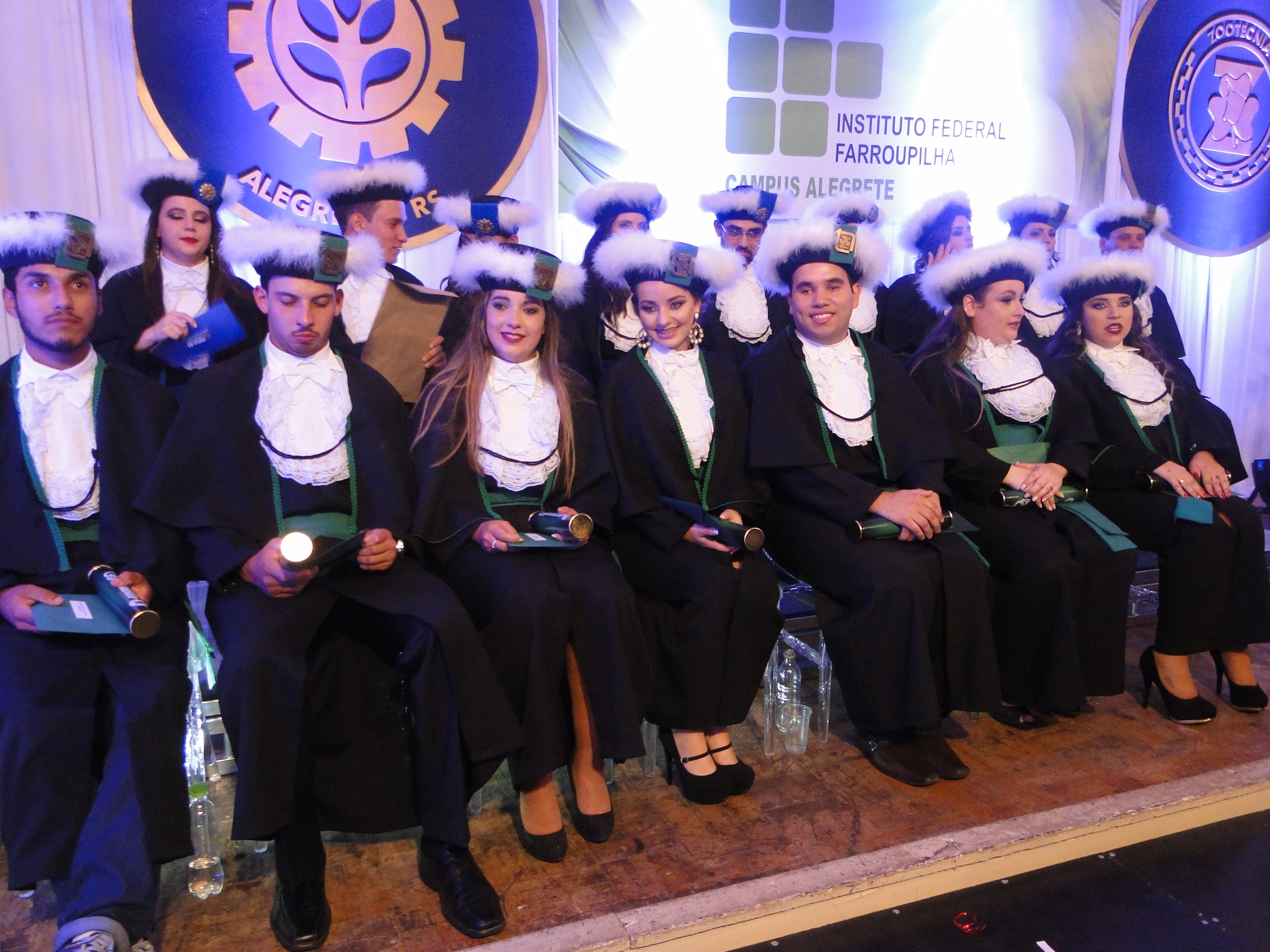 Aconteceu na quarta-feira passada (20) mais uma colação de grau do Instituto Federal Farroupilha - Campus Alegrete. Foram diplomados cinco alunos de Engenharia Agrícola e 11 de Zootecnia na cerimônia que ocorreu às 19h30, no Clube Casino Alegretense. O curso de Engenharia Agrícola, por ser interinstitucional (IF Farroupilha/Unipampa), reuniu representantes das duas instituições.