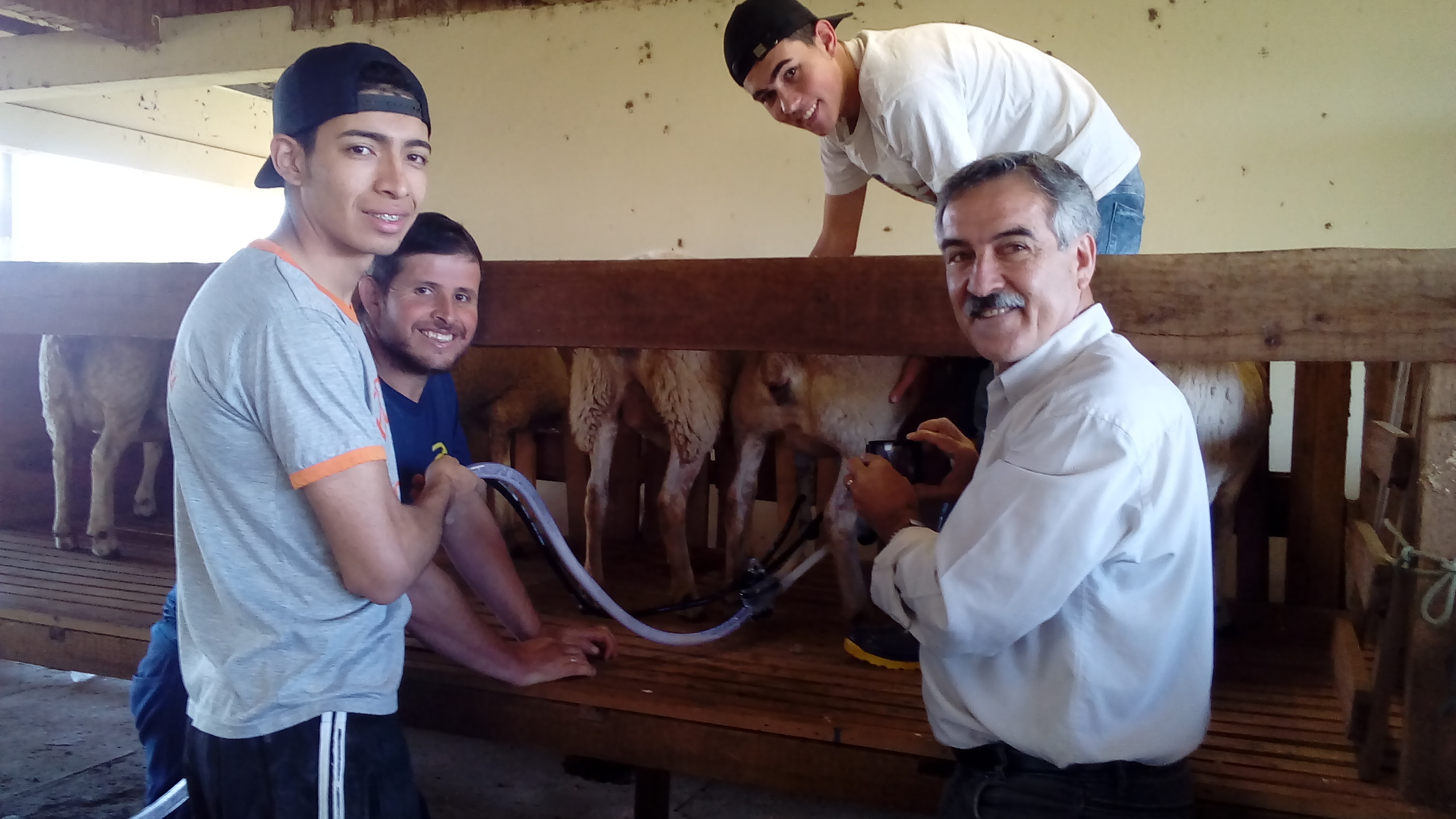 Nesse sentido, buscando a complementação profissional, já no ano de 2016, na segunda oferta do componente curricular eletivo, após os estudantes, estagiários e demais colaboradores construirem a plataforma de ordenha na LEPEP de Ovinocultura, procedeu-se visita técnica junto a Casa da Ovelha em Bento Gonçalves/RS e ao campus dessa mesma cidade, pertencente ao Instituto Federal Riograndense (IFRS). Dessa incursão, os proponentes trouxeram na bagagem ordenhadeira para ovinos, fruto das tratativas realizadas pelos Professores Emmanuel e Otacílio junto ao IFRS campus Bento Gonçalves. Por tudo, nesse mês de novembro de 2017, após a soma de esforços do Grupo de Pesquisa e Extensão em Ruminantes (GPER), firmou-se mais um marco histórico na nossa Instituição: o início da ordenha das primeiras ovelhas da LEPEP de Ovinocultura da raça Texel e Crioula. Oportunamente, com a coleta desse riquíssimo alimento, o leite ovino, iniciou-se a produção de queijos na LEPEP de Agroindústria do nosso campus.