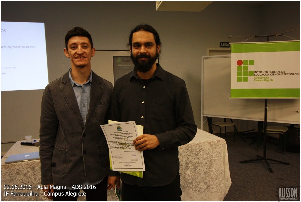 A noite foi encerrada com a entrega de certificado ao Prof. Marcelo por sua grande palestra. Posteriormente o protocolo agradeceu a presença de todos e fez o convite para a VI Semana Acadêmica de ADS que será realizada em agosto.