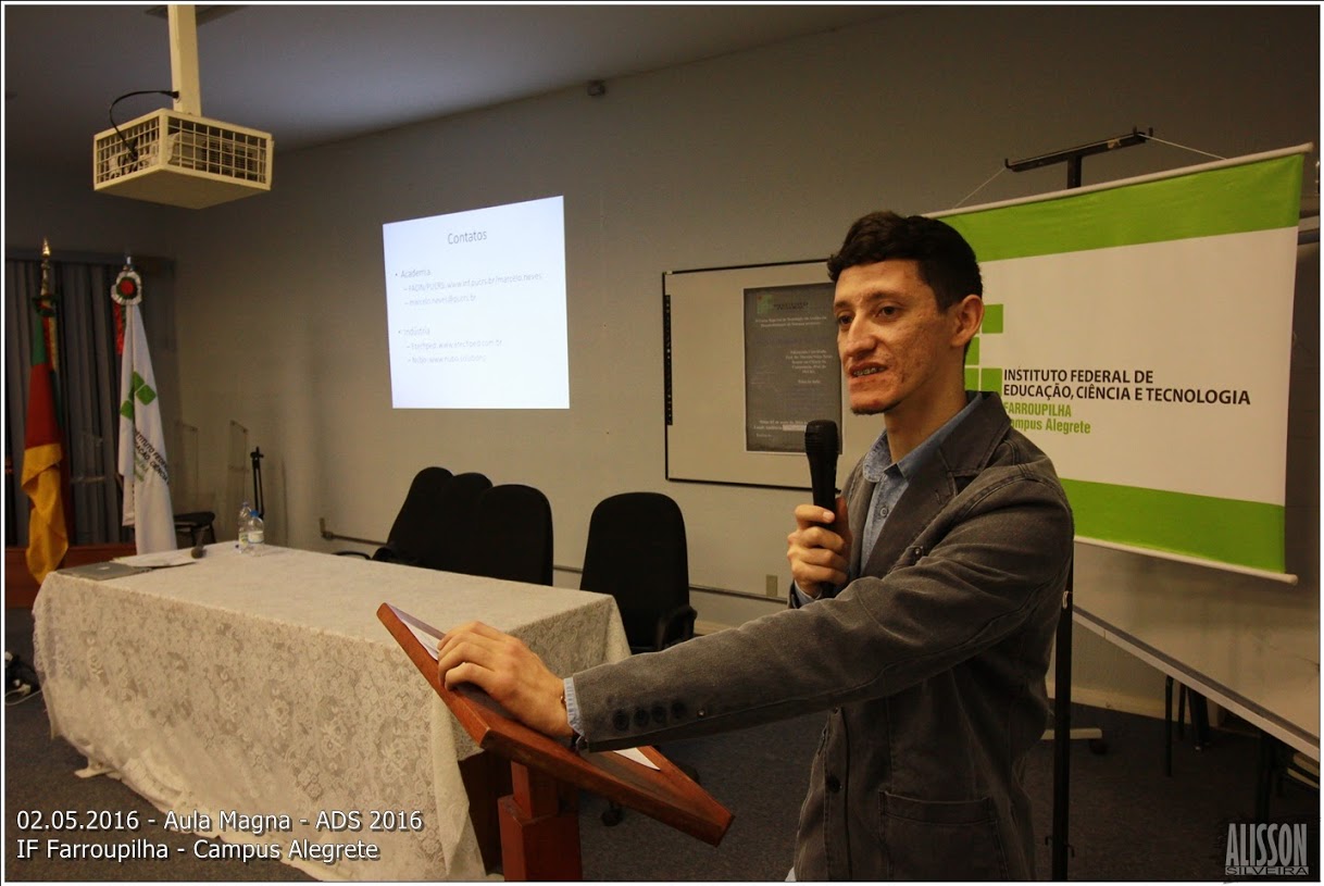 Na segunda-feira, dia 02, aconteceu no auditório central do Campus, a I Aula Magna de ADS, evento este realizado pelo Diretório Acadêmico (DADS) e Coordenação do Curso de Análise e Desenvolvimento de Sistemas. Na ocasião, foi convidado o Prof. Dr. Marcelo Veiga Neves, Professor Adjunto e Pesquisador do Laboratório de Alto Desempenho (LAD) da Pontifícia Universidade Católica do Rio Grande do Sul - PUCRS. Ele palestrou durante a noite sobre as diferenças entre se trabalhar no meio acadêmico e na "indústria" do desenvolvimento de software básico e a possibilidade de se conciliar os dois. Foi uma noite de grandes aprendizados e trocas de experiências, onde se fizeram presentes alunos do curso, do ensino técnico, Professores e TAE's do Campus.