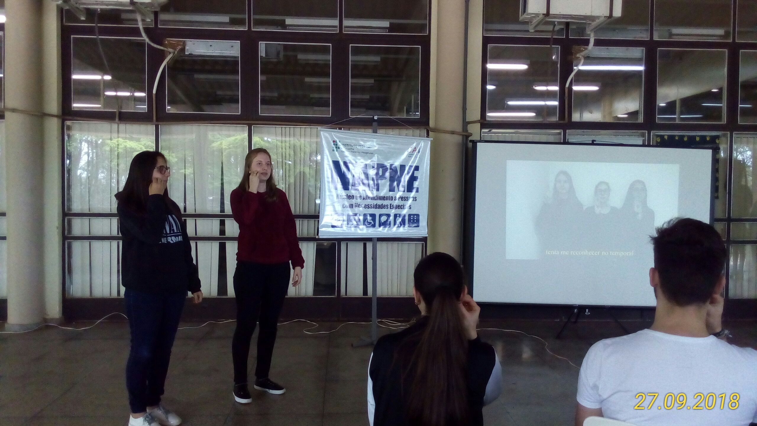 Aula Aberta de Libras com a acadêmica Karine.