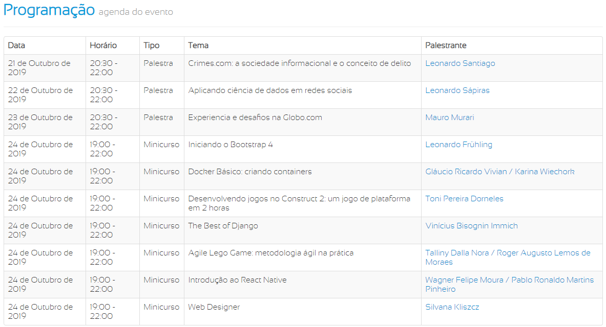 [30/Ago/2019] Divulgação dos artigos e pôsteres aceitos.