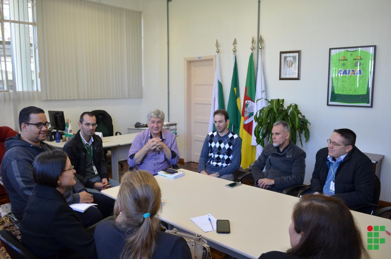 O Diretor Geral do IFFar Campus Frederico Westphalen Carlos Guilherme Trombetta recebeu nesta terça-feira, 13 de agosto, a visita do Reitor da UERGS (Universidade Estadual do Rio Grande do Sul) Professor Dr. Leonardo Alvim Beroldt, na companhia do Diretor Regional Professor Gerônimo Prado, a Coordenadora de cursos da UERGS/FW Professora Claudia Cristina Wesendonck, a Agente Administrativa Josiane Carla Guimarães Amorim e a Professora Analisa Tiburski Sommer também da unidade local.