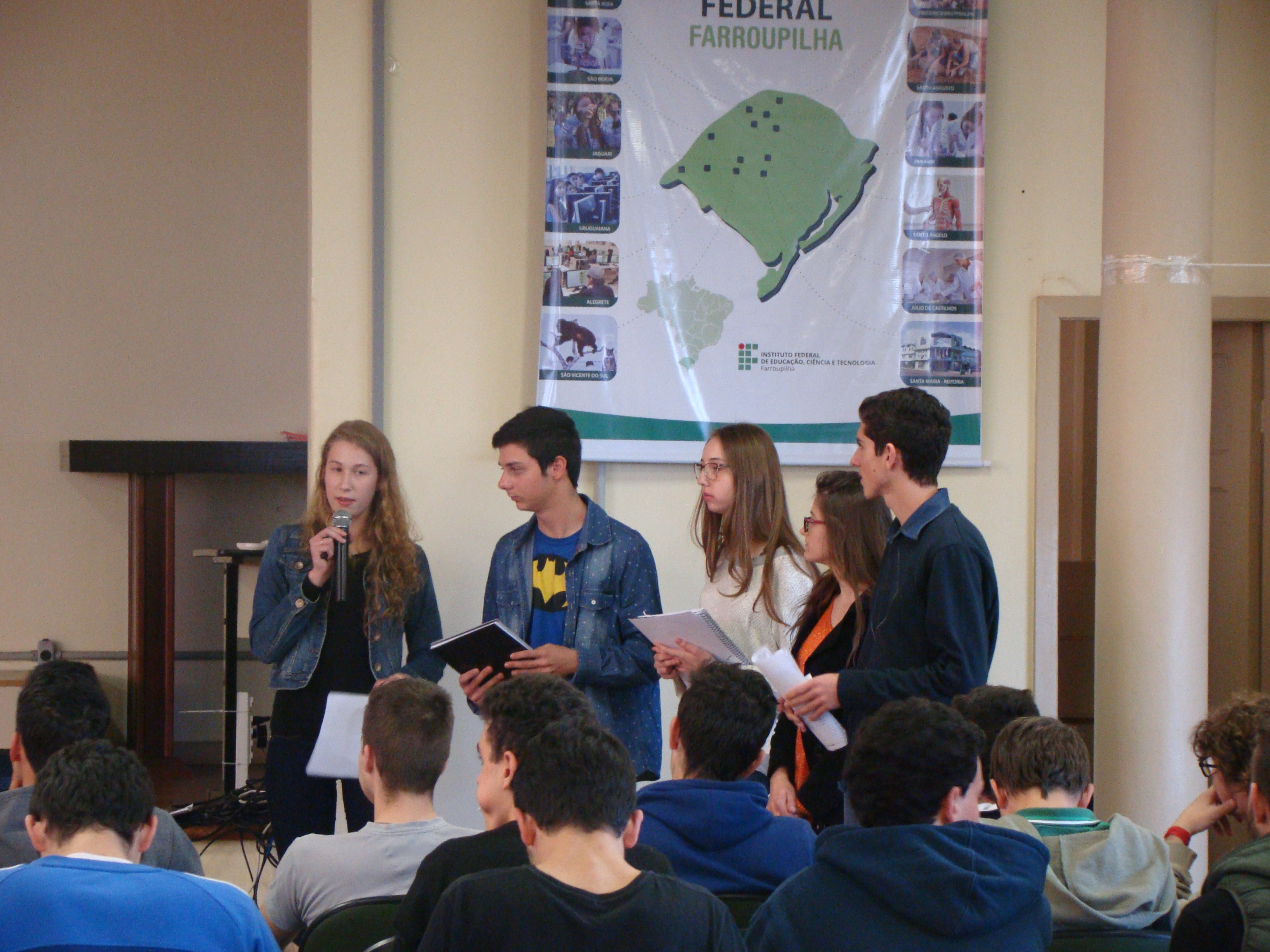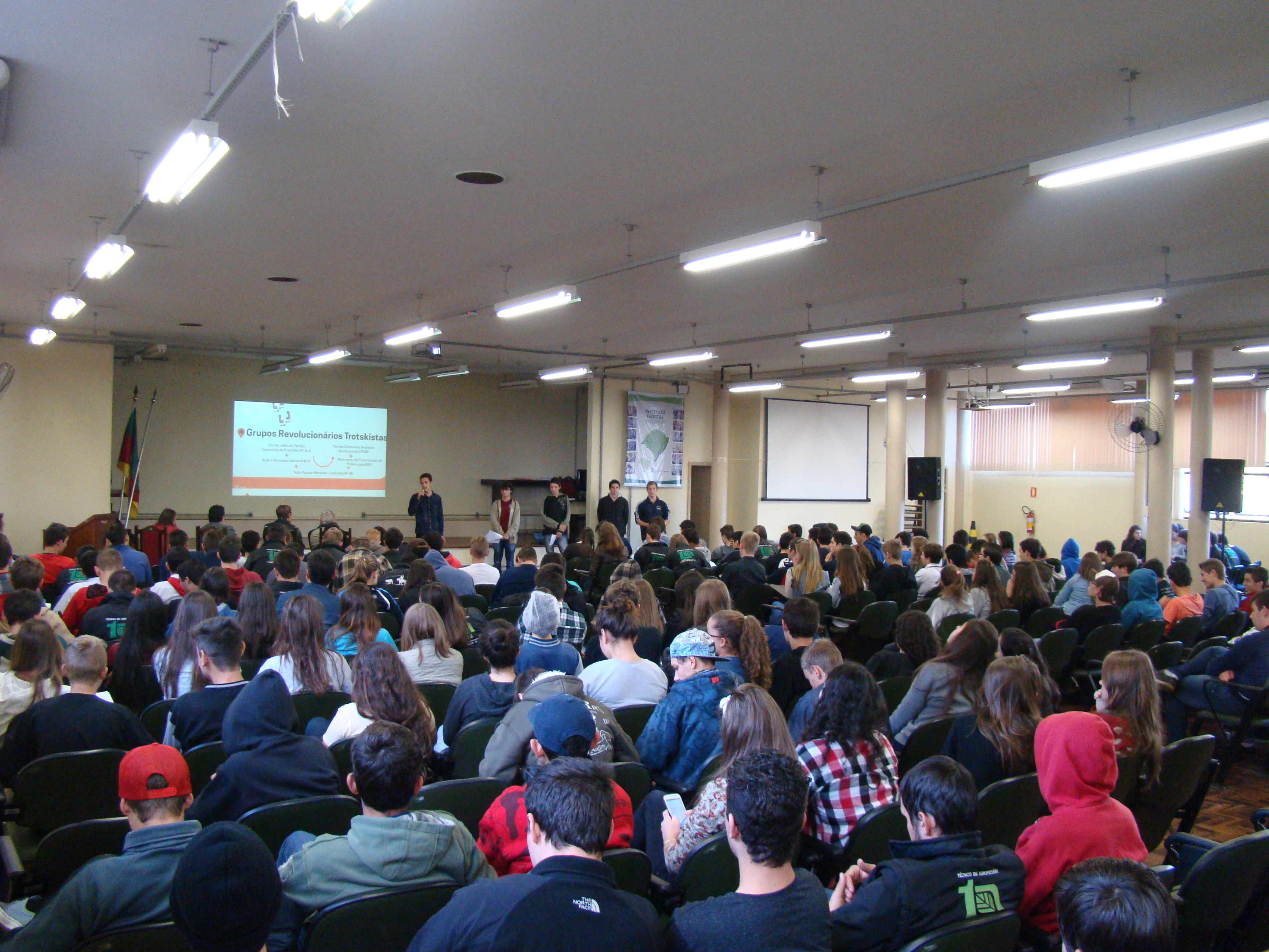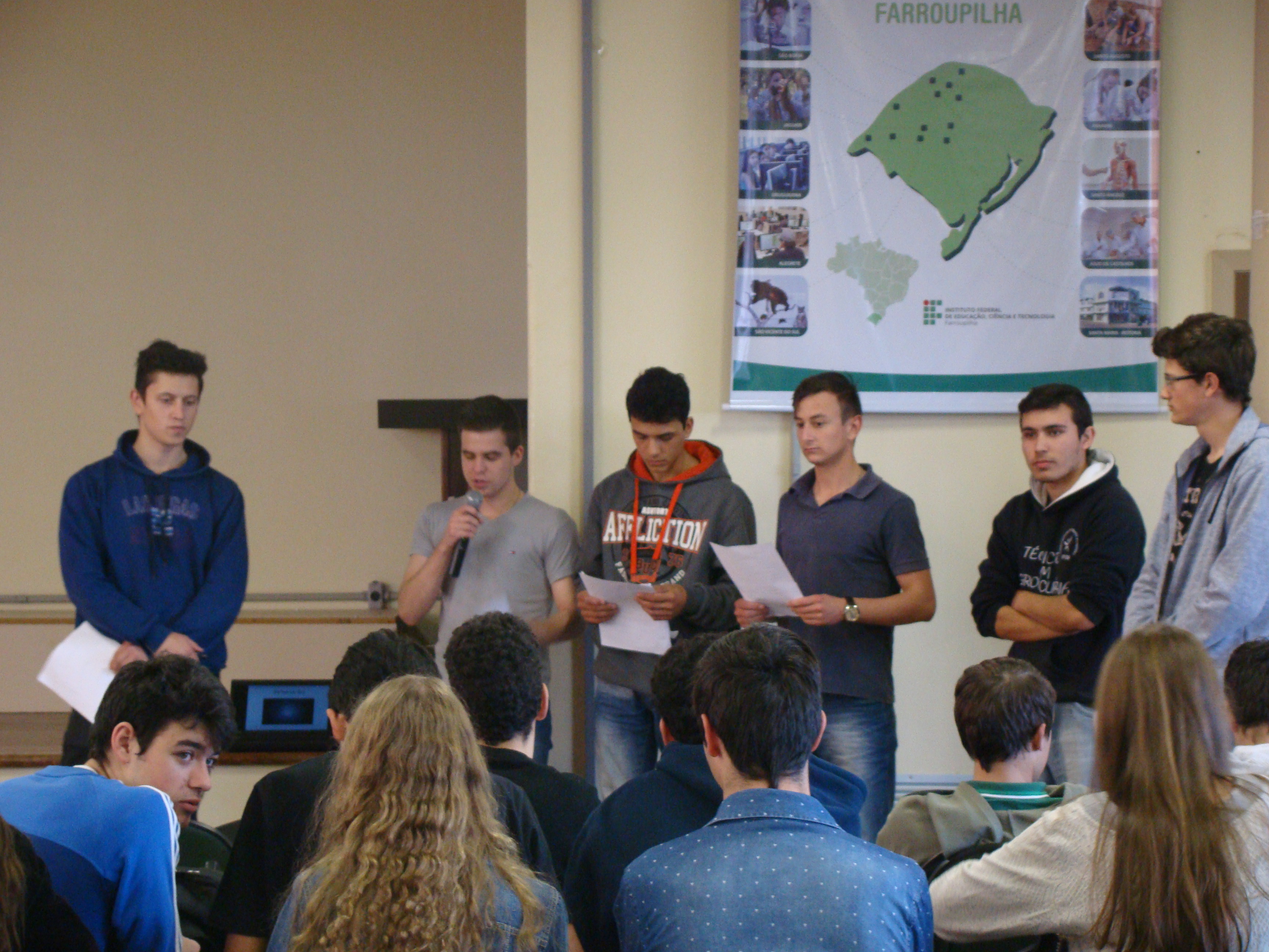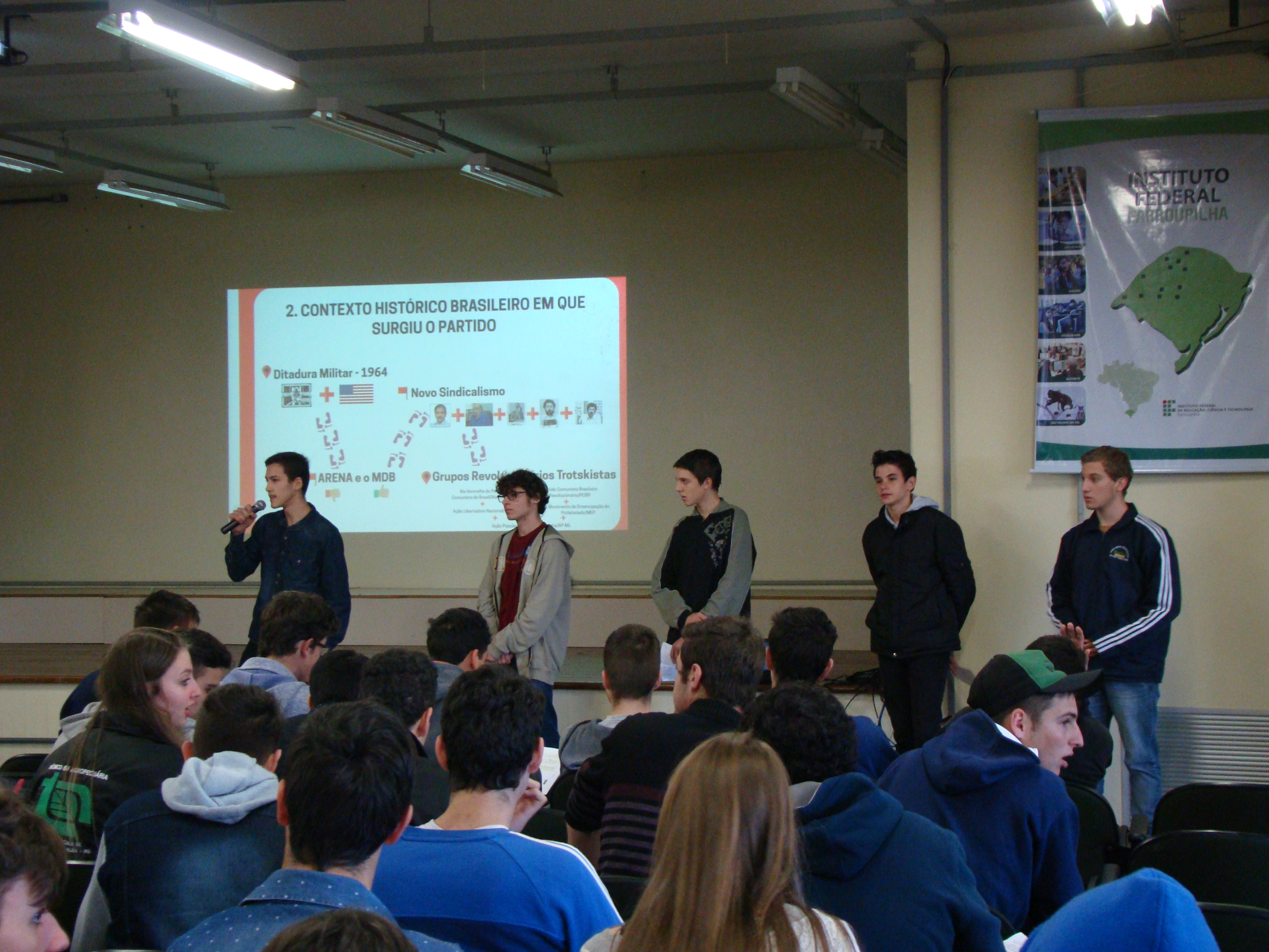 Ocorreu na última sexta, dia primeiro de julho, a apresentação dos trabalhos de Sociologia de alunos e alunas do Instituto Federal Farroupilha, câmpus de Frederico Westphalen. Eles(as) abordaram o tema "Partidos Políticos" no salão social da instituição e tiveram seus trabalhos apreciados por uma banca formada pelos professores Leocir Bressan (Filosofia), Clênio Mazzonetto (História/Filosofia), Joel Carini (Geografia) e de um participante externo, professor e advogado Giorgio Forgiarini, pesquisador da área de pensamento político brasileiro (FAPAS/Santa Maria).