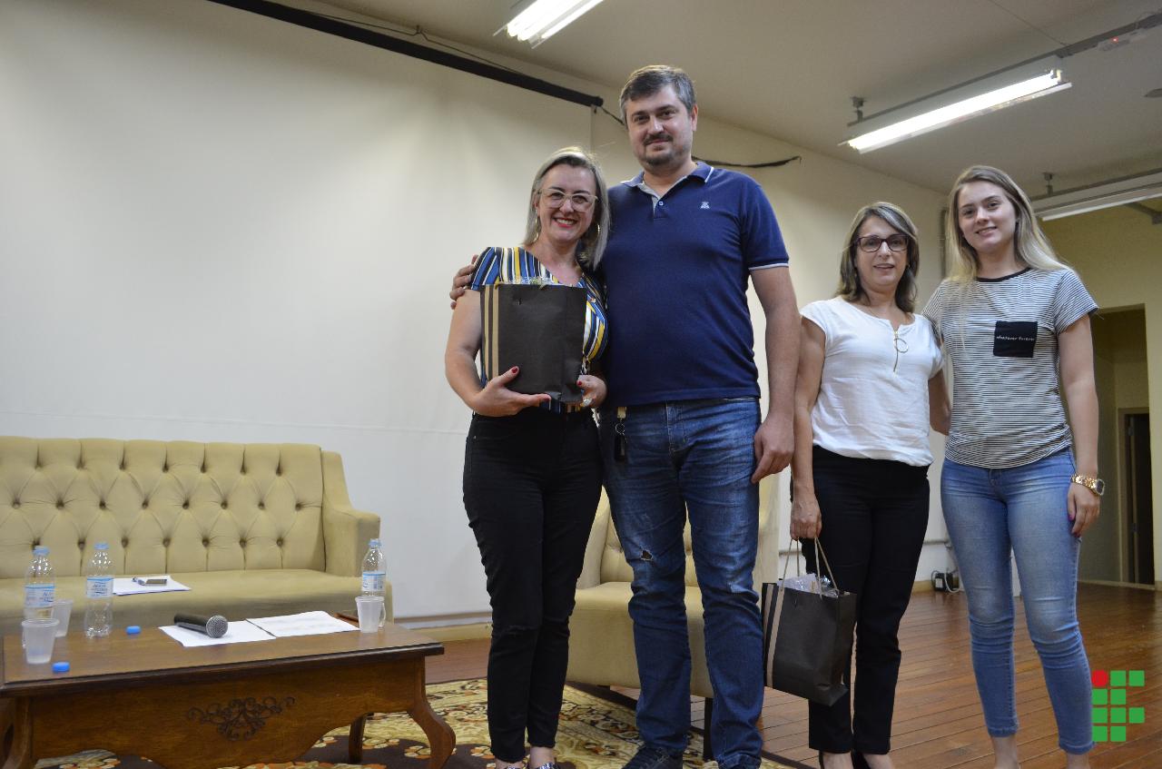 As painelistas Adriana Toso Kemp (Doutora em Educação e Professora do IFFar Campus Santo Ângelo) e Sandra Monteiro de Lemos (Doutora em Educação e Vice-Reitora na UERGS), mediadas pela professora Luciane Figueiredo Pokulat do IFFar Campus FW, trataram da temática “O papel das humanidades na Educação para a democracia”.
