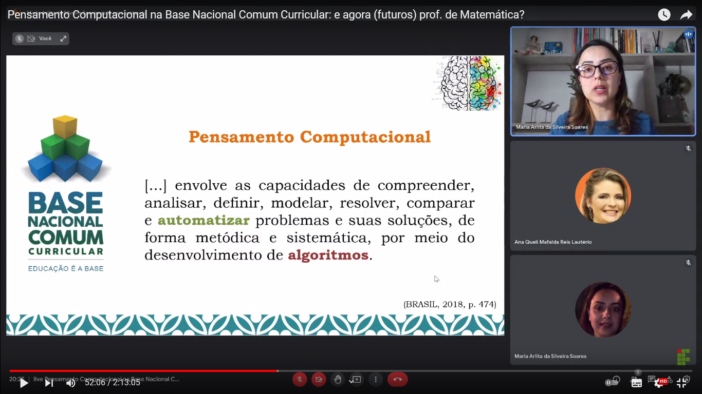 Na noite do dia vinte e dois de outubro, o curso de Licenciatura em Matemática do Instituto Federal Farroupilha – Campus de Frederico Westphalen promoveu a palestra “Pensamento Computacional na Base Nacional Comum Curricular (BNCC): e agora (futuros) professores de Matemática?”.