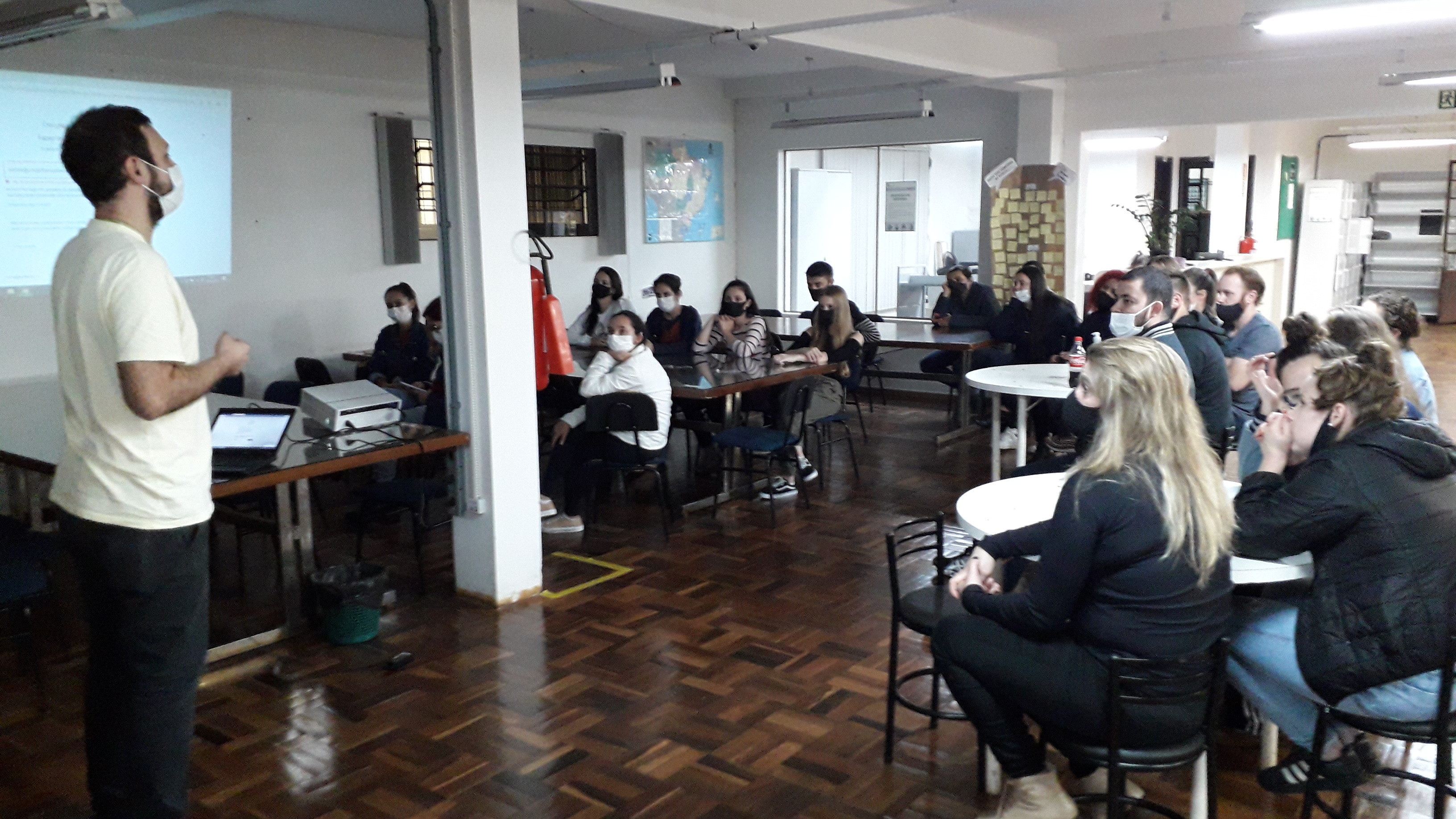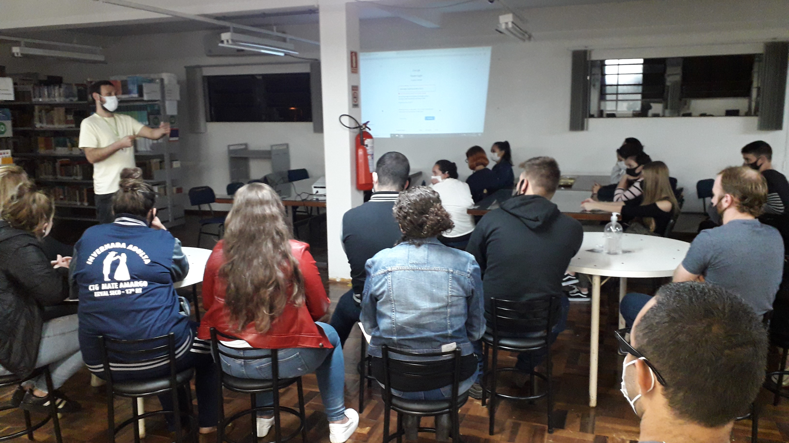 Na noite do dia 07 de abril, o Técnico-Administrativo em Educação Frederico Cutty Teixeira desenvolveu uma atividade com estudantes ingressantes do curso de Licenciatura em Matemática, visando fornecer orientações para o acesso e uso dos acervos e repositórios da biblioteca do IFFar - Campus de Frederico Westphalen.