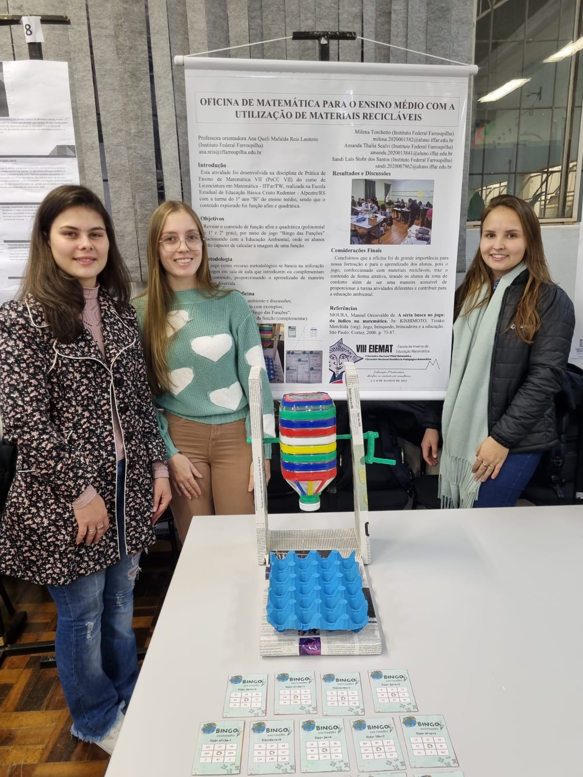 Os estudantes do 3º semestre orientados pela professora Ana Queli Reis Lautério apresentaram trabalhos com oficinas interdisciplinares envolvendo tecnologias, experimentação e material concreto no ensino da matemática.