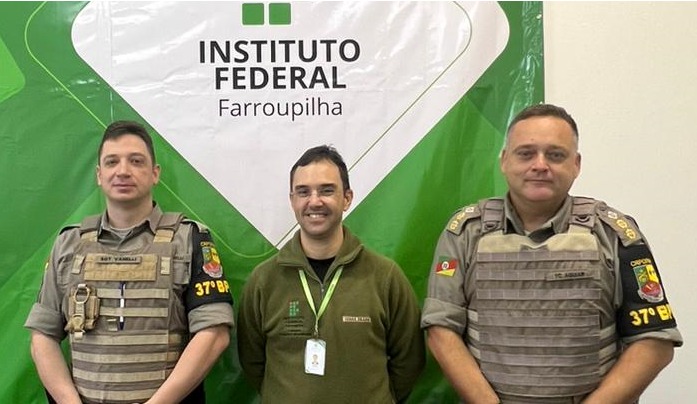 Na última quinta-feira, 10/ago, o IFFar recebeu a visita do Comando do 37º Batalhão de Polícia Militar de Frederico Westphalen para alinhamento de ações e futuras parceiras. Na oportunidade o Ten. Cel. Carlos Aguiar e o Sgto. Vanelli que estavam representando a corporação se colocaram à disposição do IFFar para a realização de atividades de cunho educativo e preventivo. Também foram tratadas questões técnicas necessária para uma futura parceria de ampliação do cercamento eletrônico de Frederico Westphalen, incluindo a via de acesso ao IFFar como parte do circuito de câmeras de segurança. O Diretor Bruno B. Boniati ressalta que a Polícia Militar tem sido parceria de longa data de nossa instituição e sempre que possível e necessário se faz presente em nossa instituição para o patrulhamento rotineiro e preventivo bem como para atividades formativas.