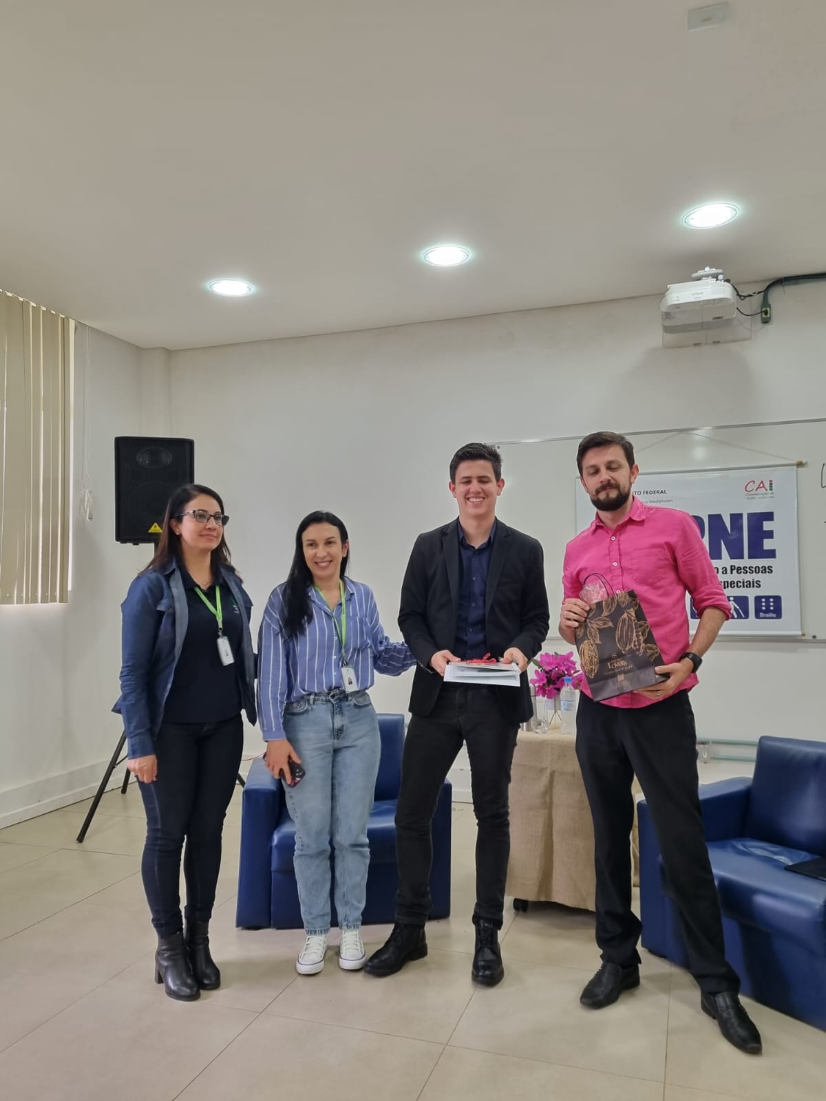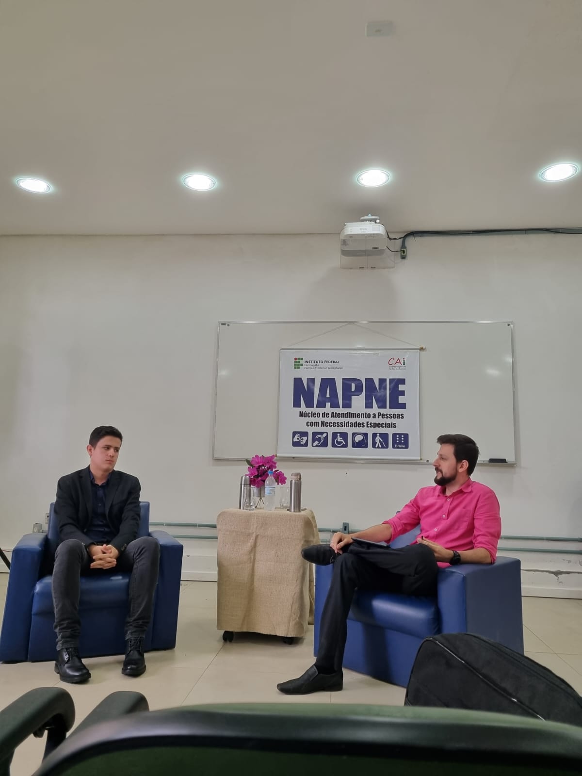 Na última Sexta-feira, dia 18 de Agosto, foi realizada uma formação para os servidores do campus promovida pela Coordenação de Apoio a Pessoas com Necessidades Educacionais Específicas – CAPNE juntamente com o Núcleo de Apoio a Pessoas com Necessidades Específicas - NAPNE, com título: Inclusão Social e Autismo: Construindo Comunidades Inclusivas. O convidado para a fala foi Jorge Alfredo Sganzerla Reis (URI-FW), e o mediador foi o professor Fernando Coelho (IFFAR-FW). Na ocasião Jorge falou sobre sua vivência como pessoa que tem o Espectro do Autismo, também os professores tiveram a oportunidade de fazer perguntas sobre sua tragetória escolar. Segundo a coordenadora da CAPNE – Angélica Pozzer, o momento foi de muito aprendizado, pois “não podemos falar sobre eles, sem eles”.