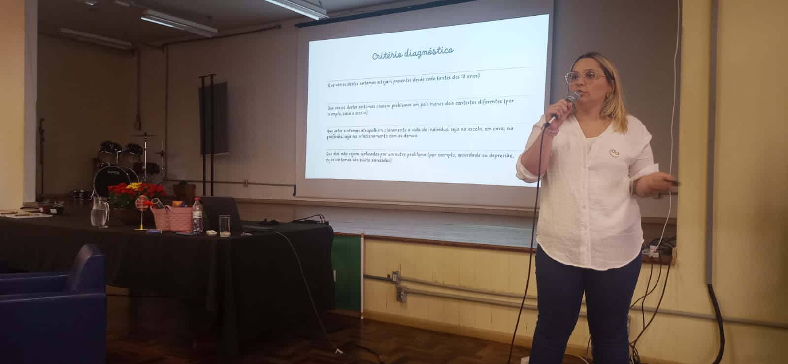 Promovido pela CAPNE-FW e pelo Núcleo de Atendimento a Pessoas com Necessidades Específicas - NAPNE, a formação em TDAH, teve como palestrante a Psicóloga Julia Casarin. Na ocasião, Julia abordou sobre como é feito o diagnóstico, comportamento e também deu dicas de como se pode trabalhar, em sala de aula, no atendimento aos alunos com esse transtorno.