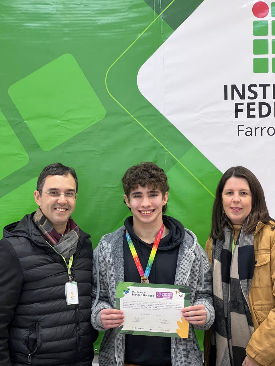 Na ocasião, foram entregues 5 certificados de Menção Honrosa e 3 Medalhas de Bronze Regionais aos seguintes estudantes dos Cursos Técnicos Integrados ao Ensino Médio: