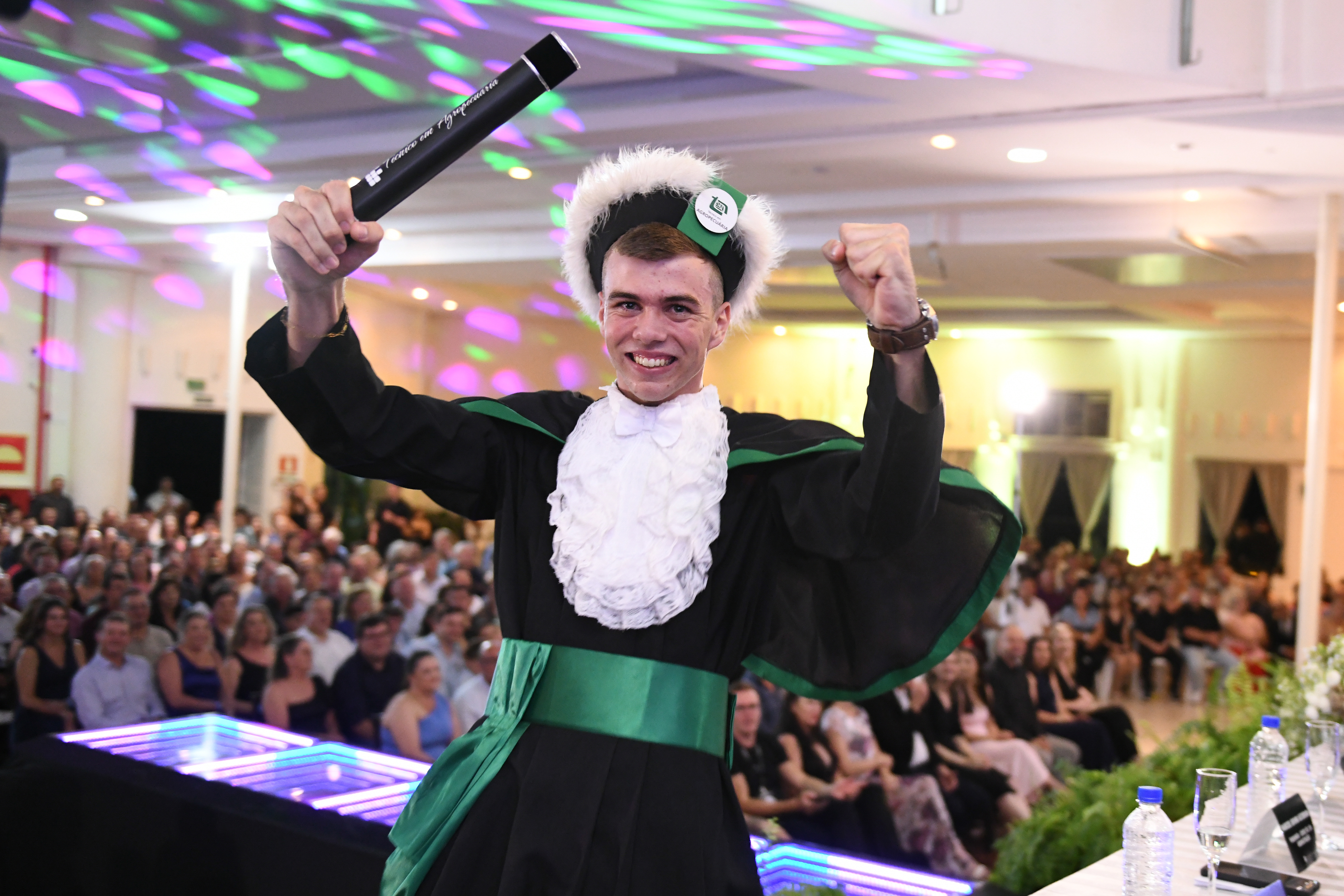 Aconteceu na noite da última sexta-feira, 21/02, na Liv Space, a solenidade de Formatura dos Cursos Técnicos Integrados em Administração, Agropecuária e Informática do IFFar - Campus Frederico Westphalen. Na ocasião, 31 concluintes do Curso Técnico em Administração, 62 concluintes do Curso Técnico em Agropecuária e 27 concluintes do Curso Técnico em Informática participaram da cerimônia de Diplomação. A solenidade contou com a presença do Pró-Reitor de Extensão do IFFar, Getúlio Jorge Stephanello Júnior, da Diretora Geral do IFFar - Campus FW, professora Silvana Alves Pedrozo, além dos Paraninfos, Patronos, homenageados, familiares e amigos dos formandos, constituindo um público de mais de mil pessoas que prestigiaram momentos de grande emoção e de realização.