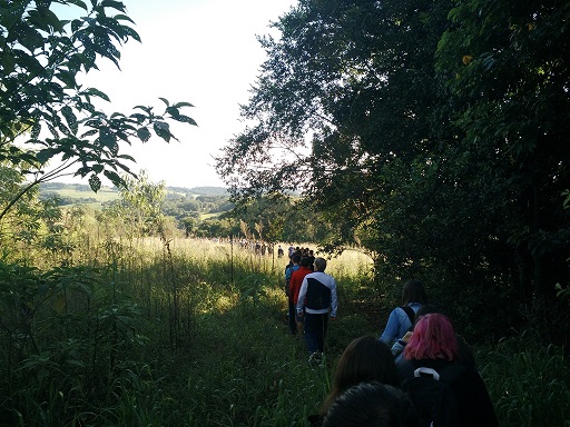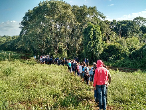 Foi realizado no último sábado, dia 18, uma trilha ecológica que faz parte do projeto “Trilhas Interpretativas do ‘Panelão’”. Aproximadamente 80 estudantes dos cursos técnicos e de graduação do Instituto Federal Farroupilha Campus Frederico Westphalen, aproveitaram o sábado letivo para realizar uma trilha em meio à mata nativa com acompanhamento de servidores. Foram percorridos cerca de 2,5 Km em aproximadamente duas horas de caminhada. O trajeto iniciou no Panelão e foi até as Três Quedas (uma barragem artificial utilizada para estabilizar a água para um antigo moinho movido por rodas d’água).