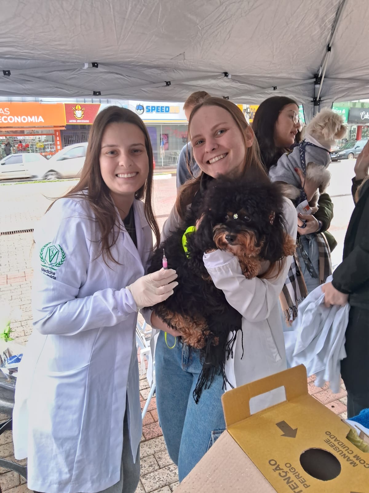 No sábado, 14 de junho, a quinta turma de Medicina Veterinária (ATMV-05) do IFFar Campus Frederico Westphalen realizou uma campanha de vacinação contra a raiva, voltada para cães e gatos, na Praça da Matriz. A ação teve como objetivo promover a saúde animal e conscientizar a comunidade sobre a importância da imunização.