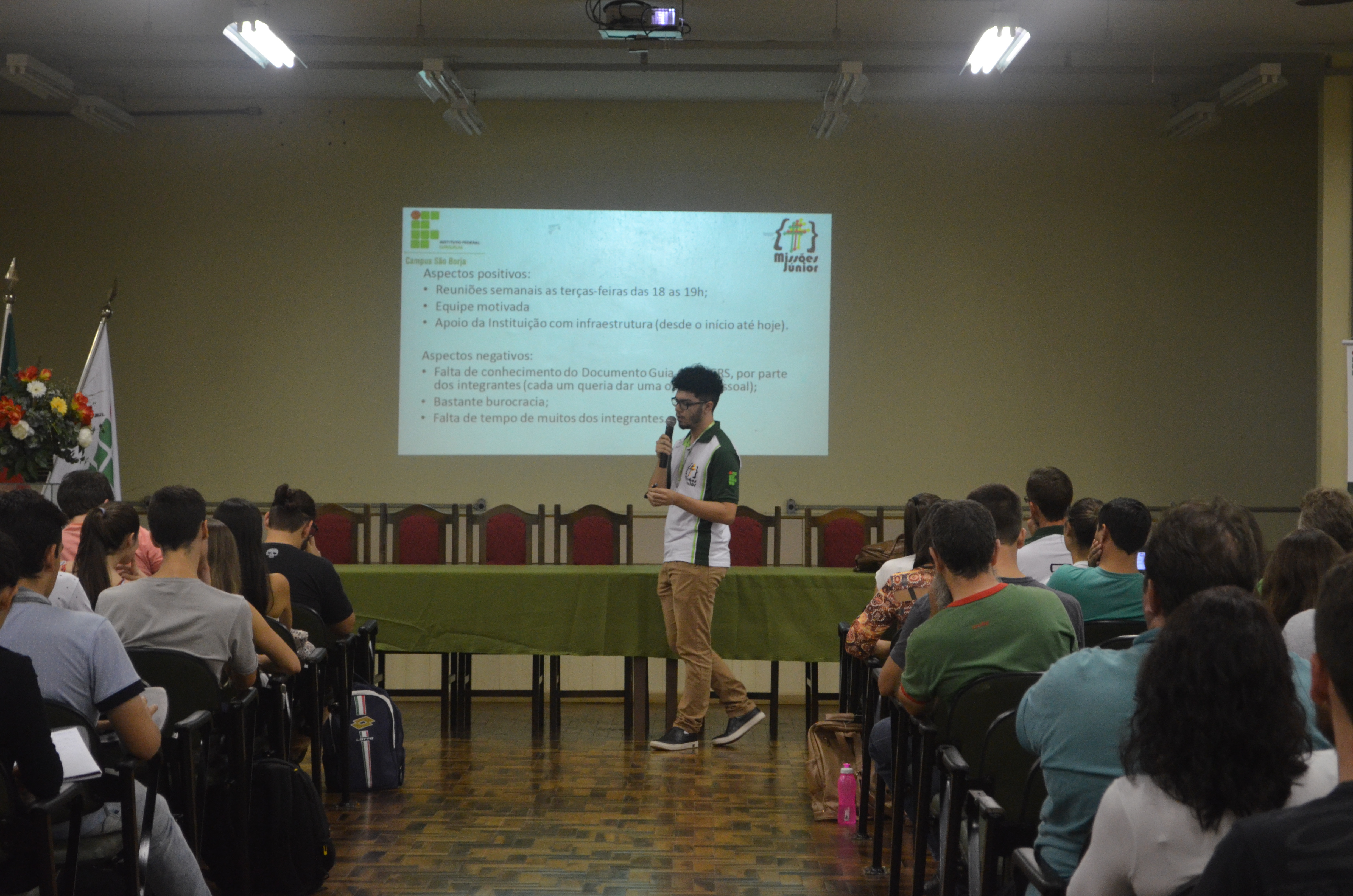 Na palestra foi relatado a história da primeira Empresa Júnior do Instituto Federal Farroupilha na qual eles atuam no Campus de São Borja e todos os processos de idealização e burocracia para criar a empresa também foram descritos na palestra. Segundo o presidente da empresa o acadêmico Alecsander Dornelles Ribeiro a empresa possibilita muitos benefícios, como o crescimento pessoal, além da possibilidade de ingressar de maneira mais fácil no mercado de trabalho, para Alecsander “A empresa Júnior serve para possibilitar a prática do mercado de trabalho na carreira do jovem”.