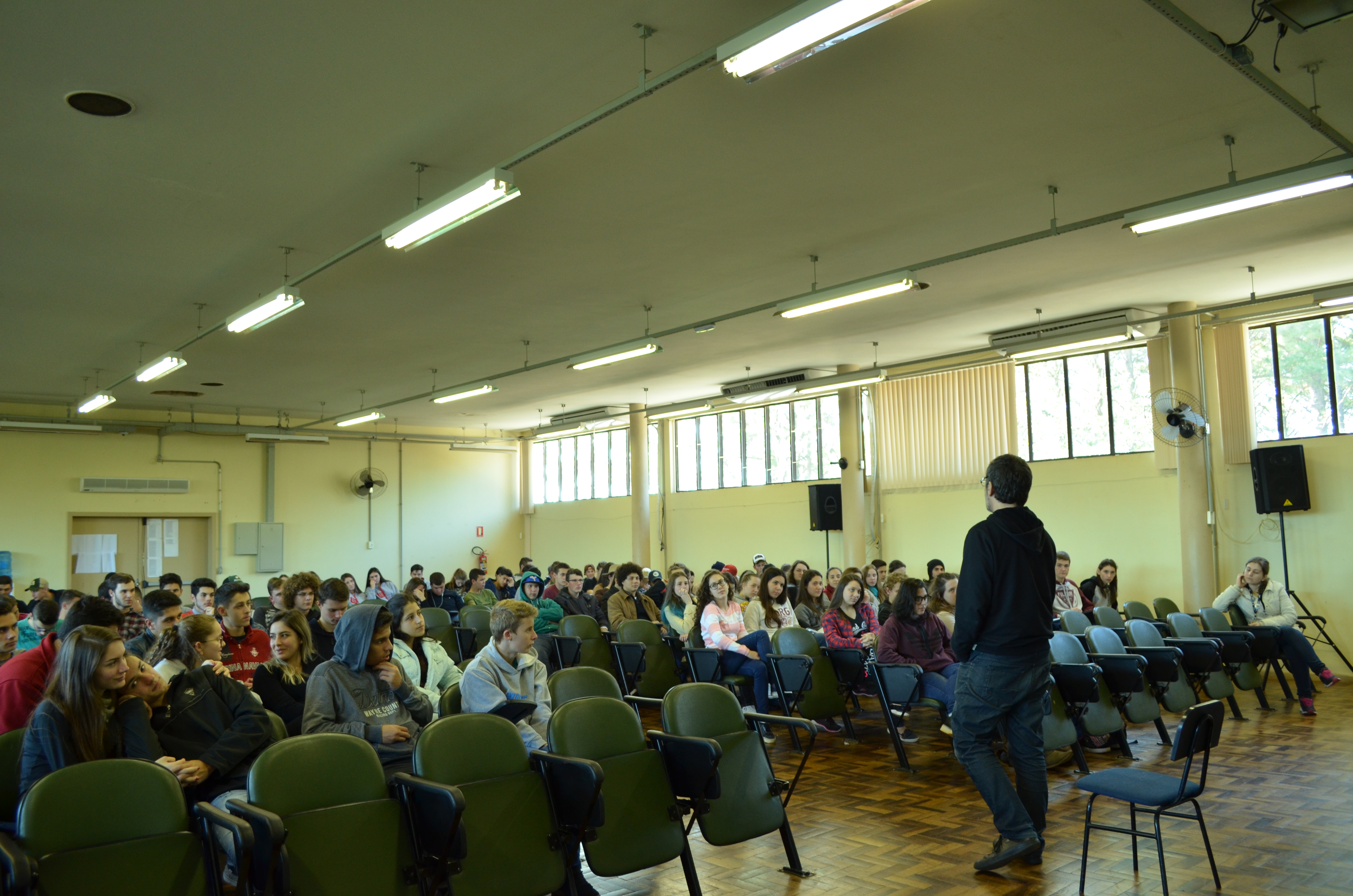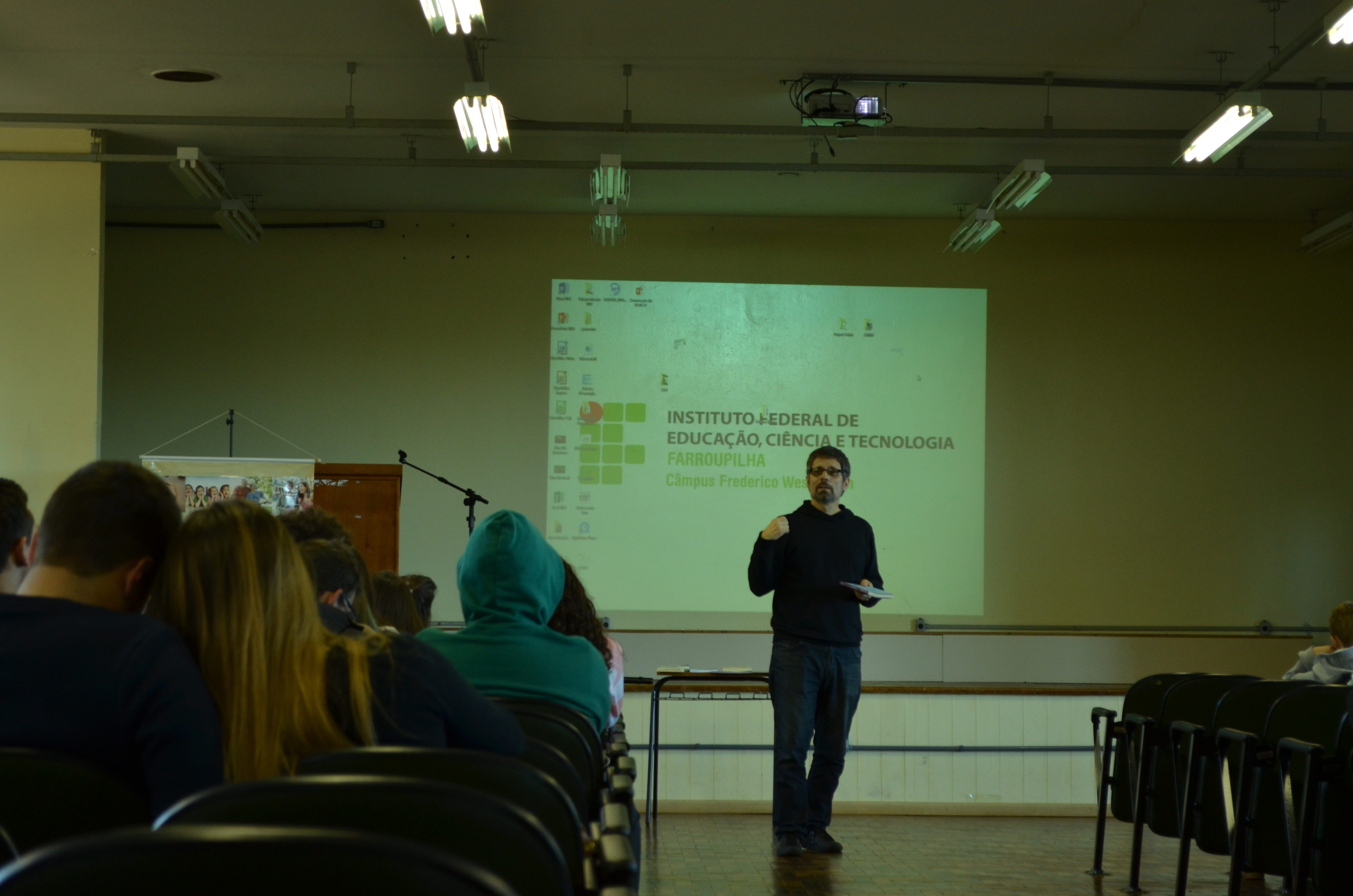 A tarde desta quinta-feira, 22, no Instituto Federal Farroupilha Campus Frederico Westphalen foi marcada pela palestra do escritor Ricardo Silvestrin, os alunos dos cursos técnico integrado foram até o salão social para assistir a palestra “Escrevendo, Escreouvindo, Escrelendo” em parceria com o SESC.