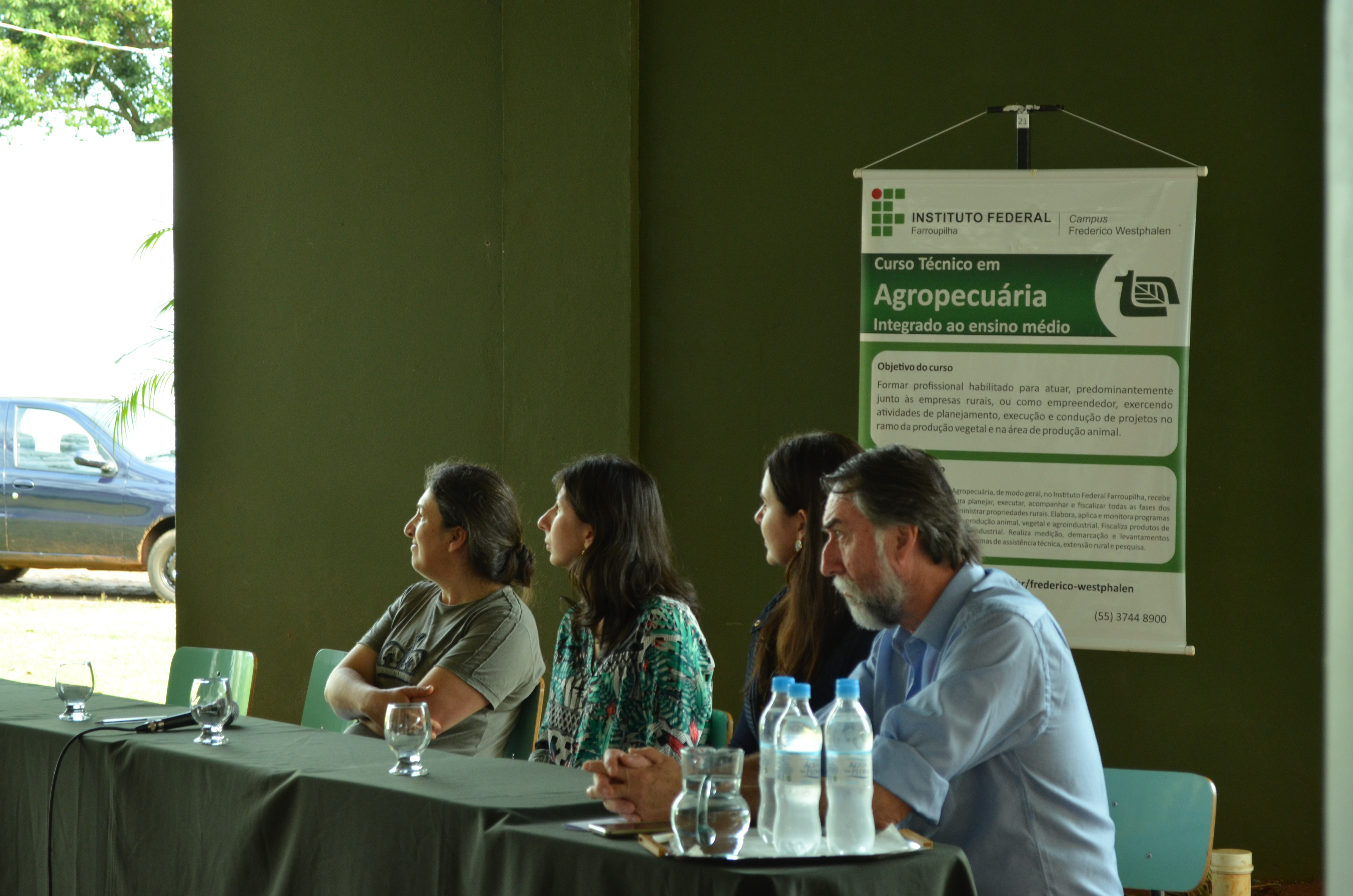 Após as apresentações dos trabalhos foi realizada uma mesa redonda sobre o tema “Manejo sanitário animal em propriedades rurais” com o médico veterinário e chefe da Inspetoria Veterinária de Frederico Westphalen Edson Busetto, com a fiscal ambiental da prefeitura de Taquaruçu do Sul Loiva Somavilla, Débora Zanbam da prefeitura da Taquaruçul do Sul e com a médica veterinária da secretária de agricultura de Frederico Westphalen Magali Piaia