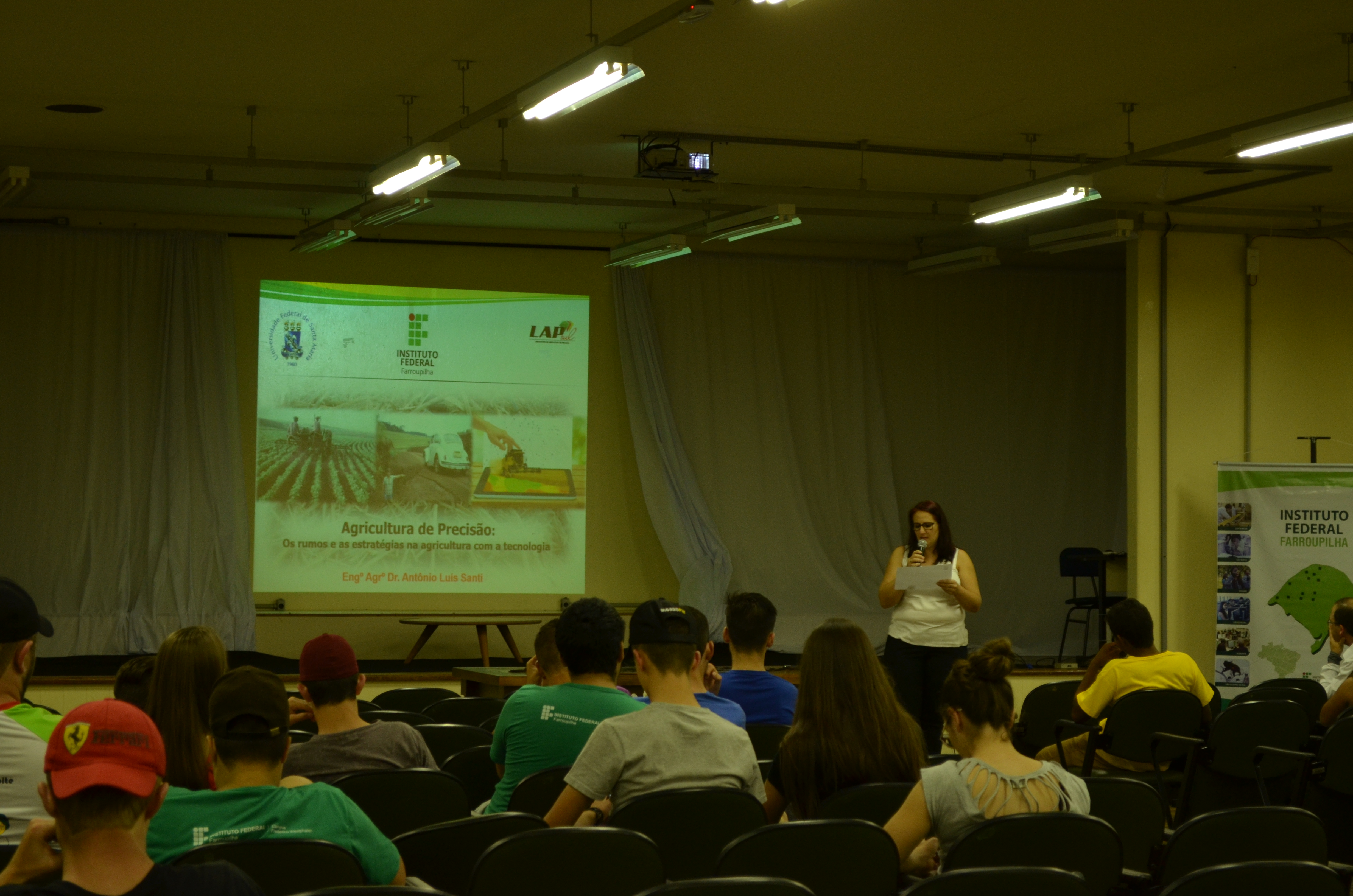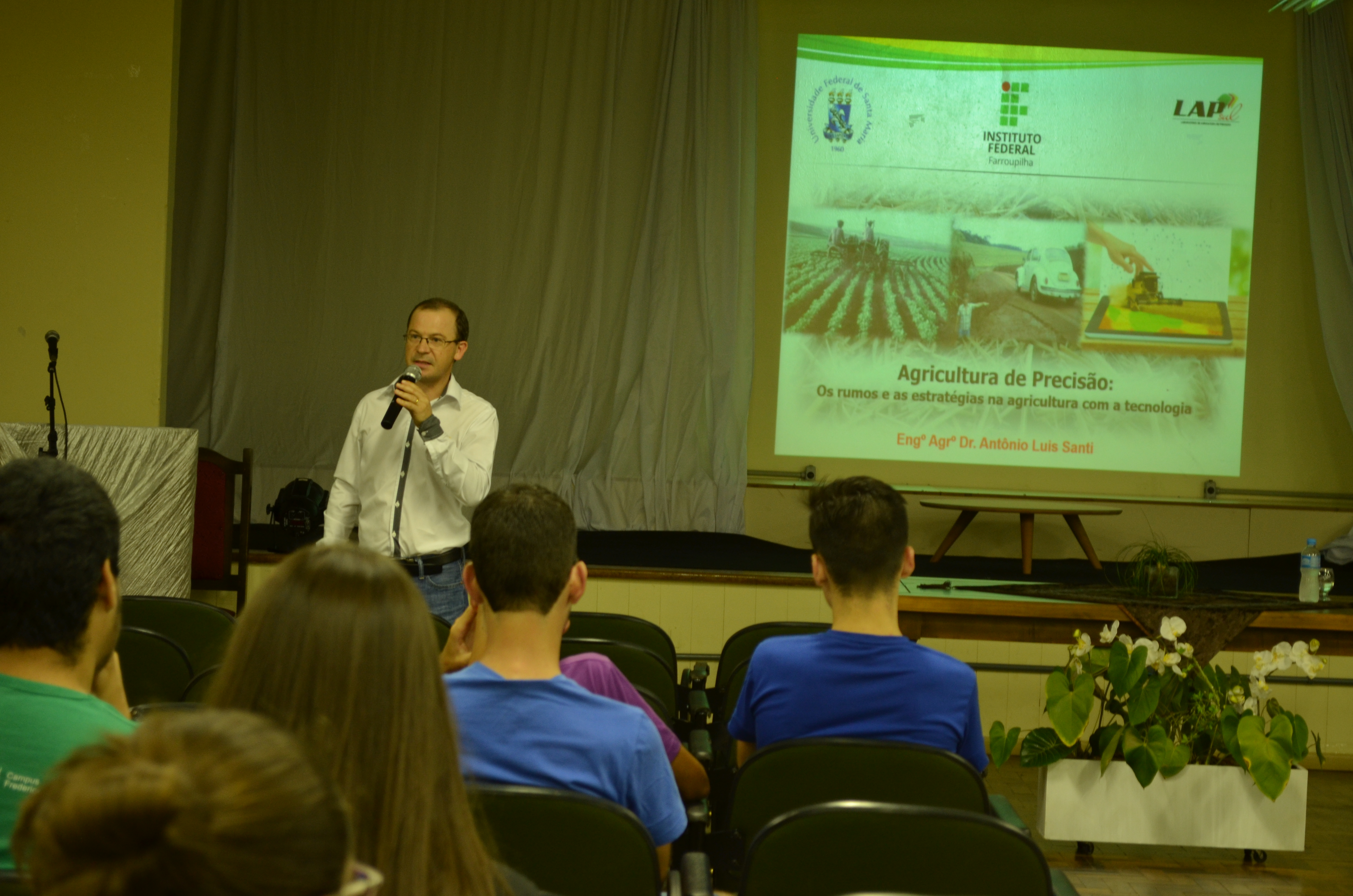 O tema da palestra do Curso Técnico Agropecuária foi “Agricultura de Precisão”, que foi ministrada pelo Dr. Antonio Luis Santi, professor UFSM/FW. O professor Antonio Luis Santi enfatizou a importância das tecnologias na agricultura “A agricultura de precisão é uma tecnologia que chegou no início dos anos 2000 no Brasil e veio com uma proposta de aplicar os insumos no local correto no momento certo e também de maneira adequada, ou seja, uma forma de se gerenciar melhor a lavoura e entender os locais que se tem baixa e alta produtividade. Trabalhar esse tema com as novas gerações, que tem essa facilidade de usar essa tecnologia, favoreceu essa questão de ensinar as novas tecnologias como a agricultura de precisão”.