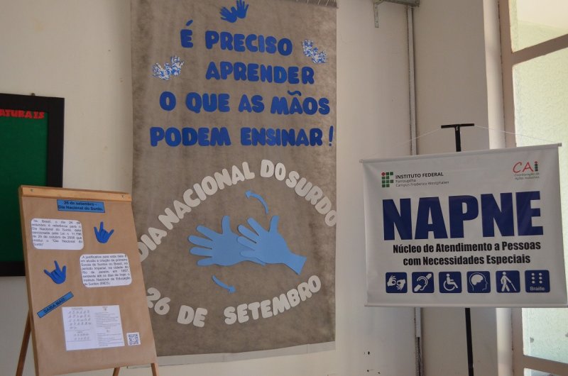 No IFFar – Campus Frederico Westphalen, temos uma aluna com deficiência auditiva, usuária do Sistema FM, no Curso Técnico em Informática integrado ao Ensino Médio e, no Curso de Bacharelado em Administração, uma aluna surda. Essa realidade, nos convoca a estarmos realizando ações contínuas de divulgação da Libras entre os/as servidores/as e alunos/as e de aspectos de convivência peculiares a estas diferenças.