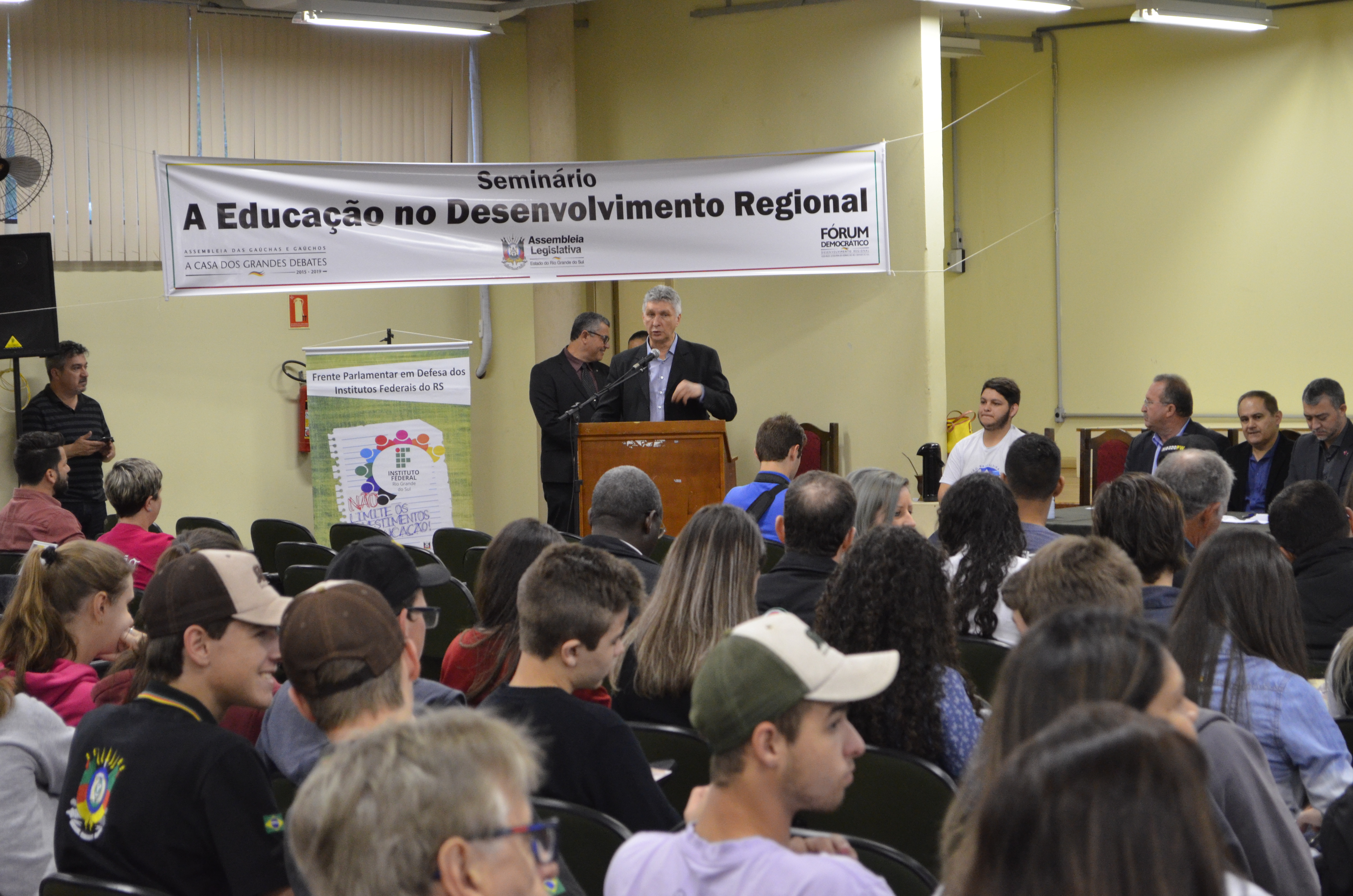 Na manhã desta sexta-feira, 06, foi realizado no salão social do Instituto Federal Farroupilha - Campus Frederico Westphalen o seminário “A Educação no Desenvolvimento Regional”, o evento é promovido pela Assembleia Legislativa do Estado do Rio Grande do Sul, pelo Fórum Parlamentar em Defesa dos Institutos Federais do RS e pelo Fórum Democrático e tem o apoio do IFFar - Campus Frederico Westphalen e da UFSM-FW.