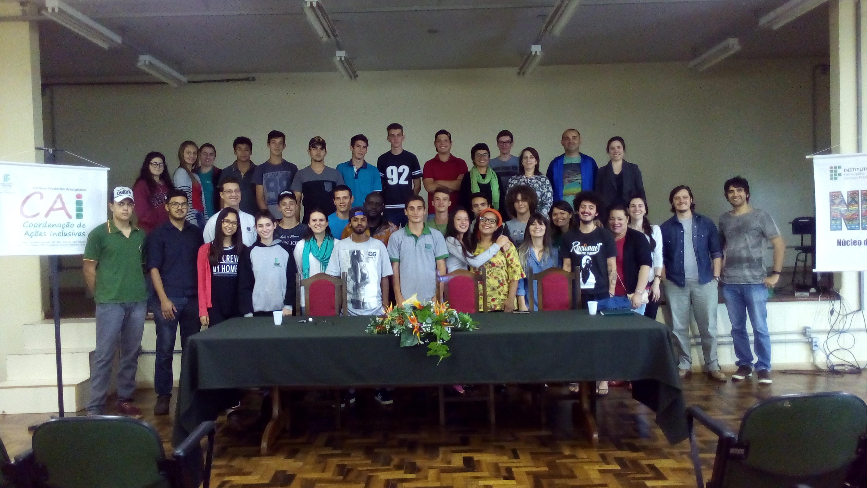 Foto coletiva, servidoras/es, alunas/os e convidados