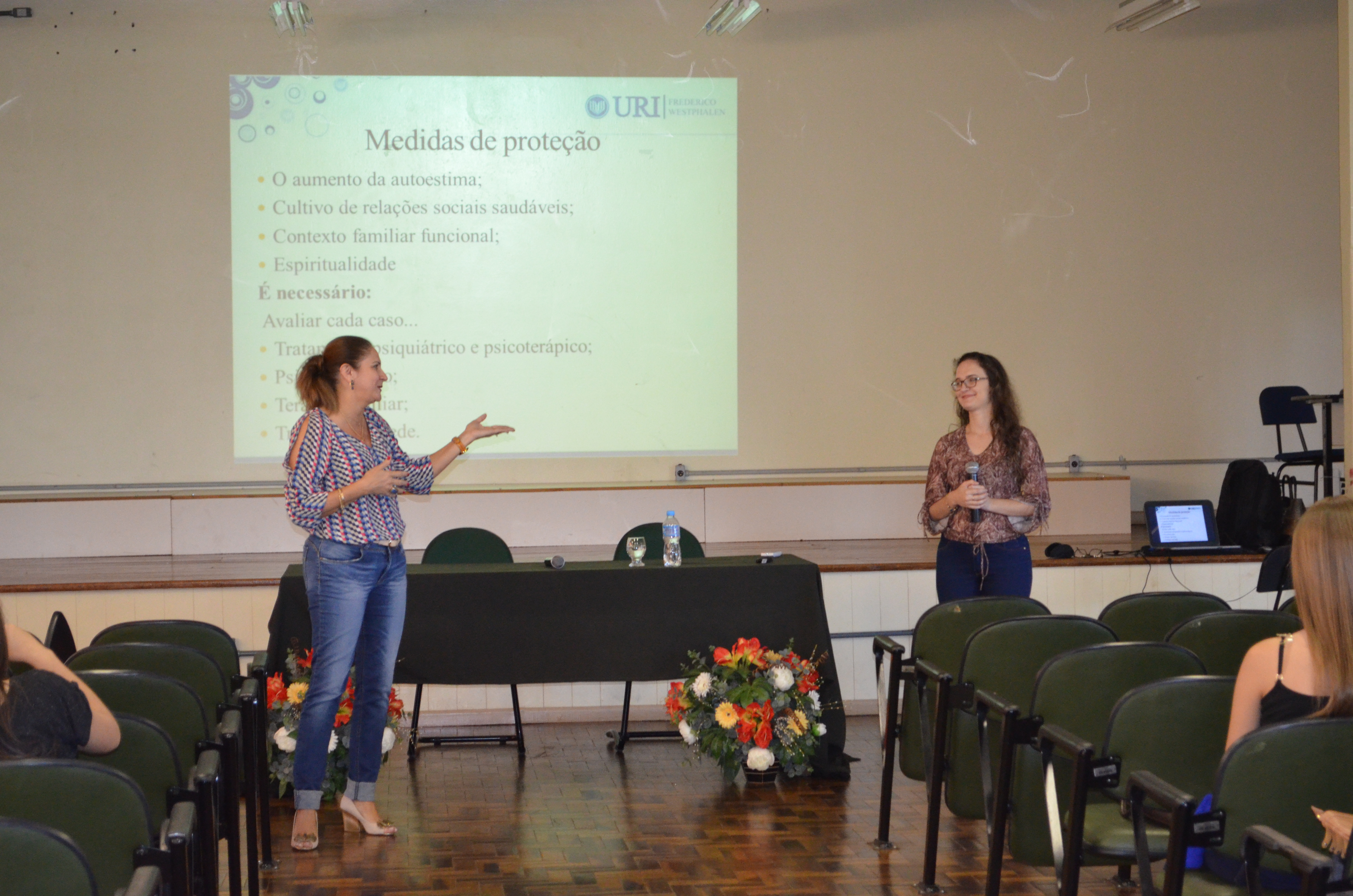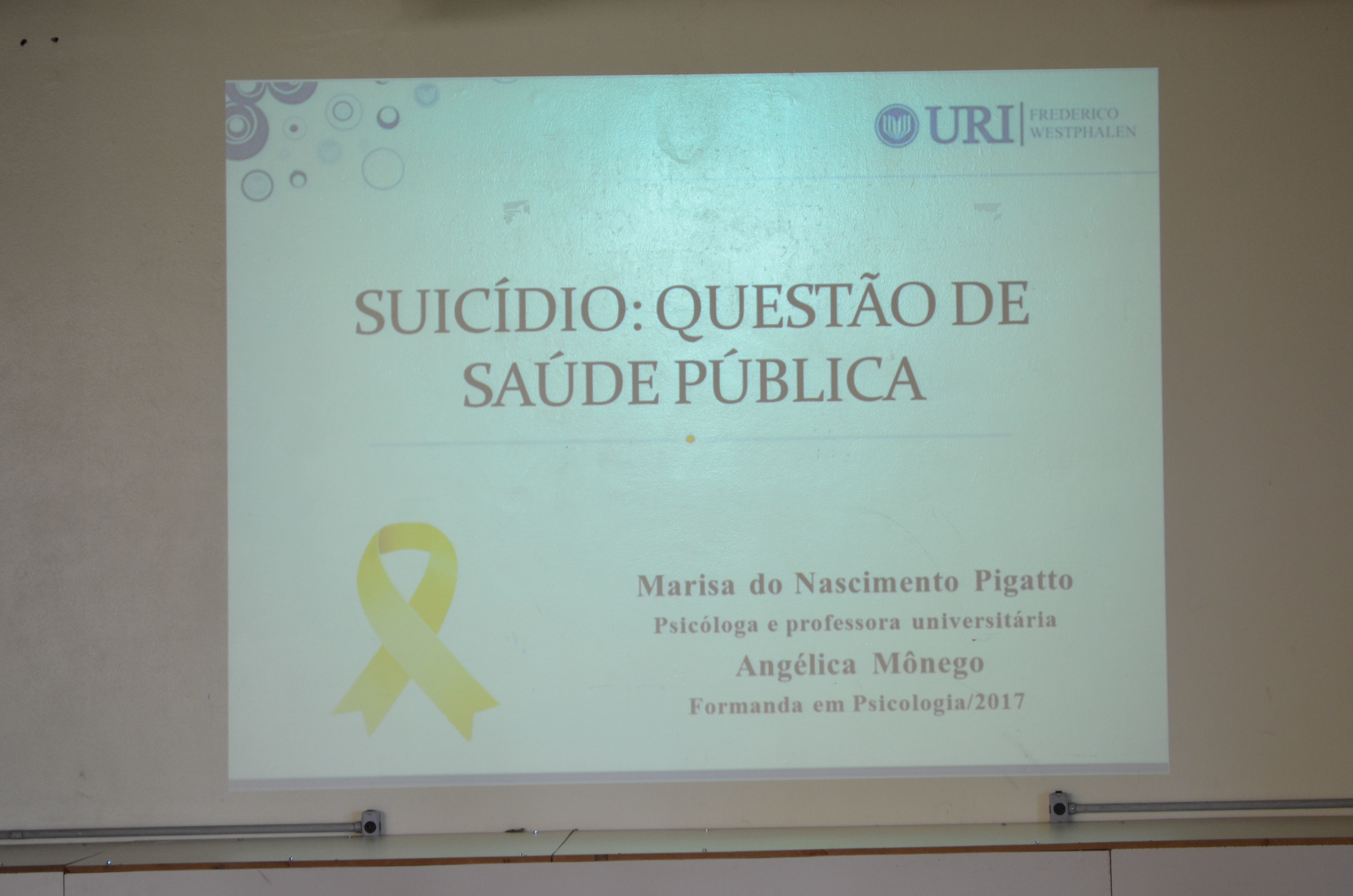 Na manhã de segunda, 11, o Instituto Federal Farroupilha Campus Frederico Westphalen promoveu a palestra com a Psicóloga e Professora da URI, Marisa do Nascimento Pigatto e a Formanda em Psicologia, Angélica Mônego. O tema foi “Suicídio: questão de Saúde Pública”, a palestra faz parte da campanha desenvolvida na Instituição “Setembro Amarelo”. A palestra ocorreu no Salão Social da Instituição e reuniu alunos e servidores.