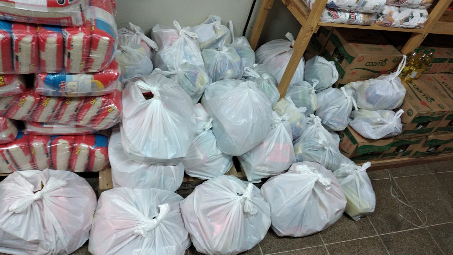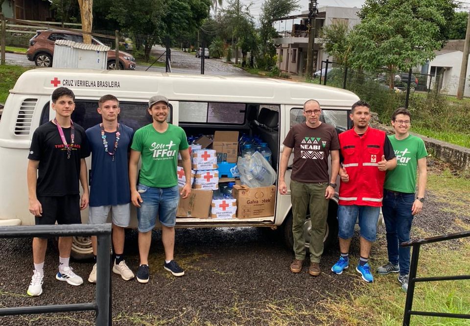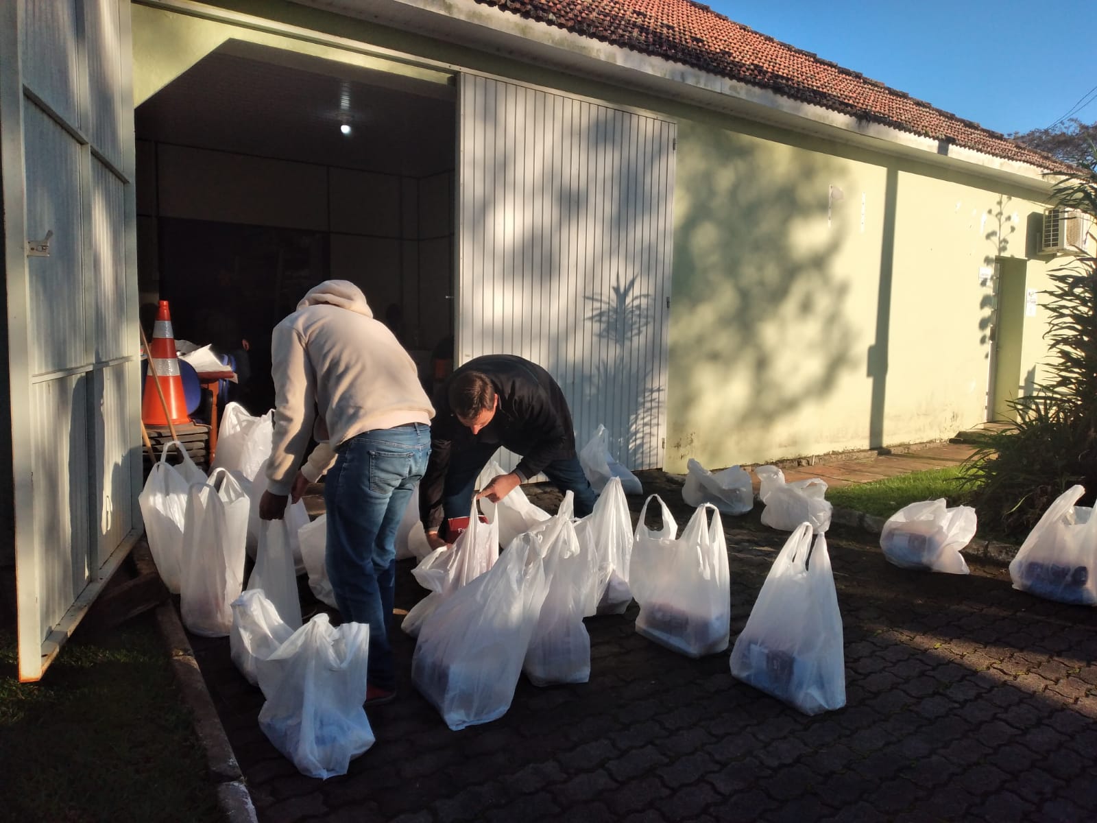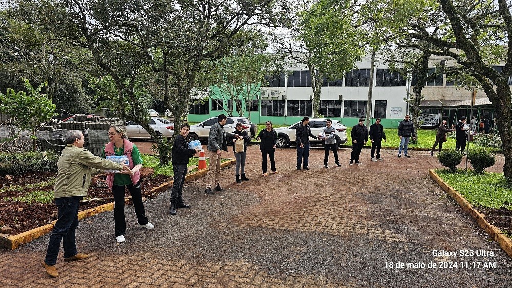 Estudantes do IFFar e funcionários terceirizados que tiveram suas residências atingidas pelas fortes chuvas e enchentes também receberam doações cestas básicas e kits de alimentação arrecadados.