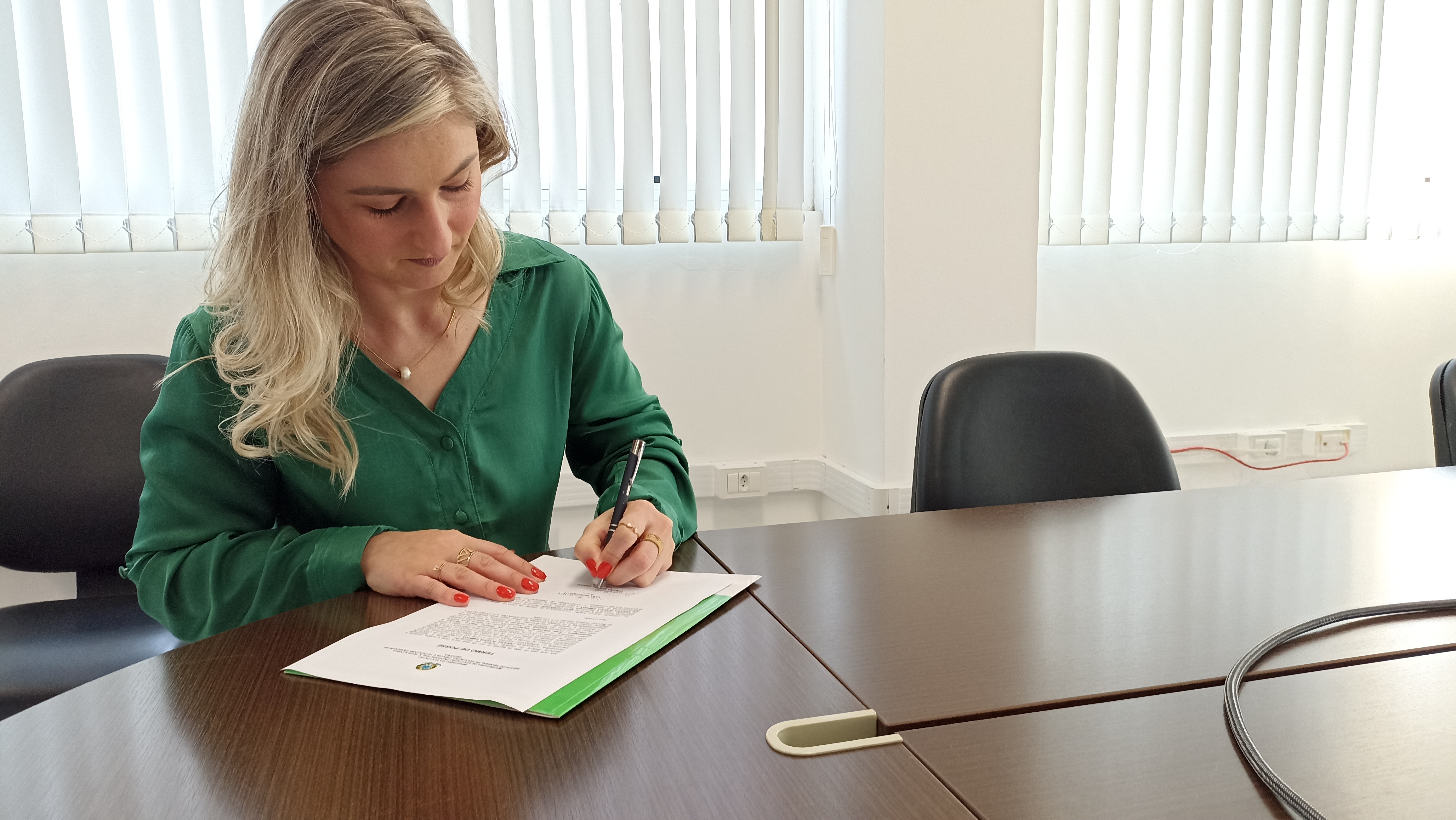 Reitora Nídia Heringer assina termo de posse de nova servidora