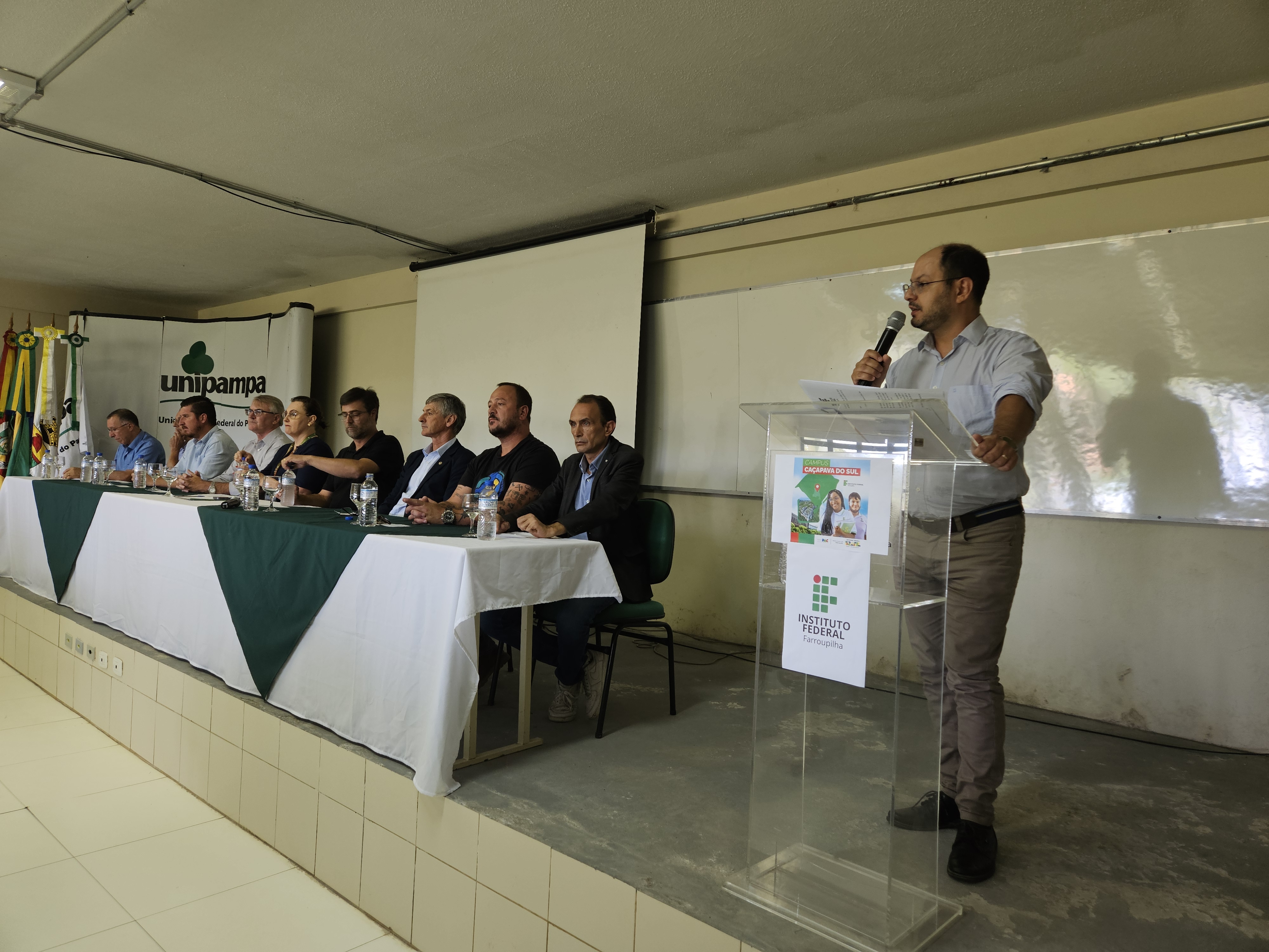 O IFFar formalizou o início das obras do Campus Caçapava do Sul. As portarias que autorizam a construção foram assinadas em cerimônia realizada na tarde desta segunda-feira (20), no auditório da Universidade Federal do Pampa (Unipampa). O evento reuniu representantes do IFFar, autoridades municipais e estaduais, além da comunidade local, destacando o papel estratégico da instituição na oferta de educação técnica e tecnológica na região.