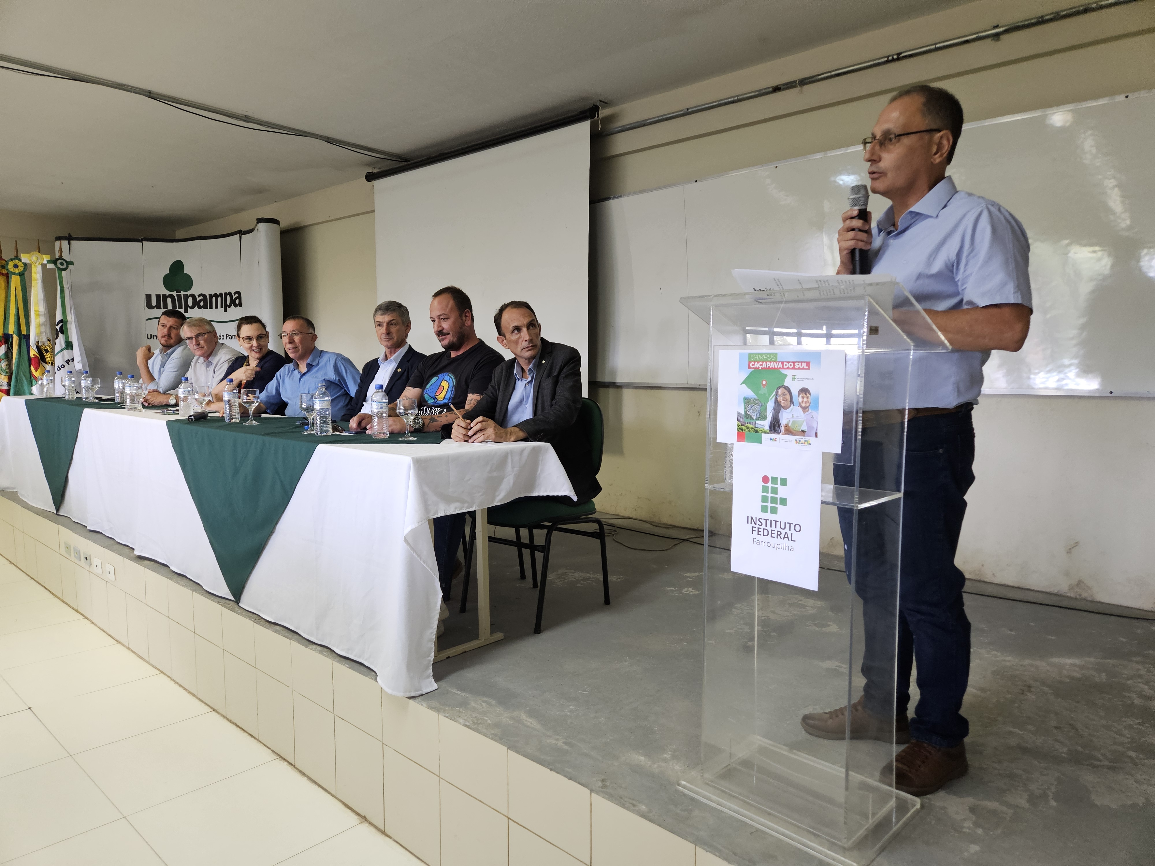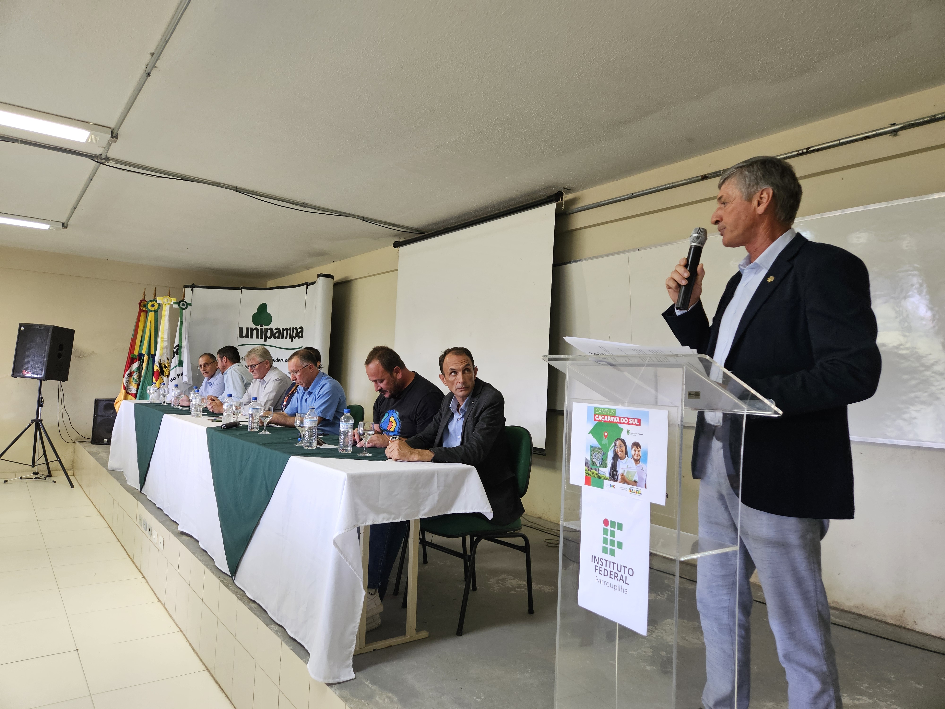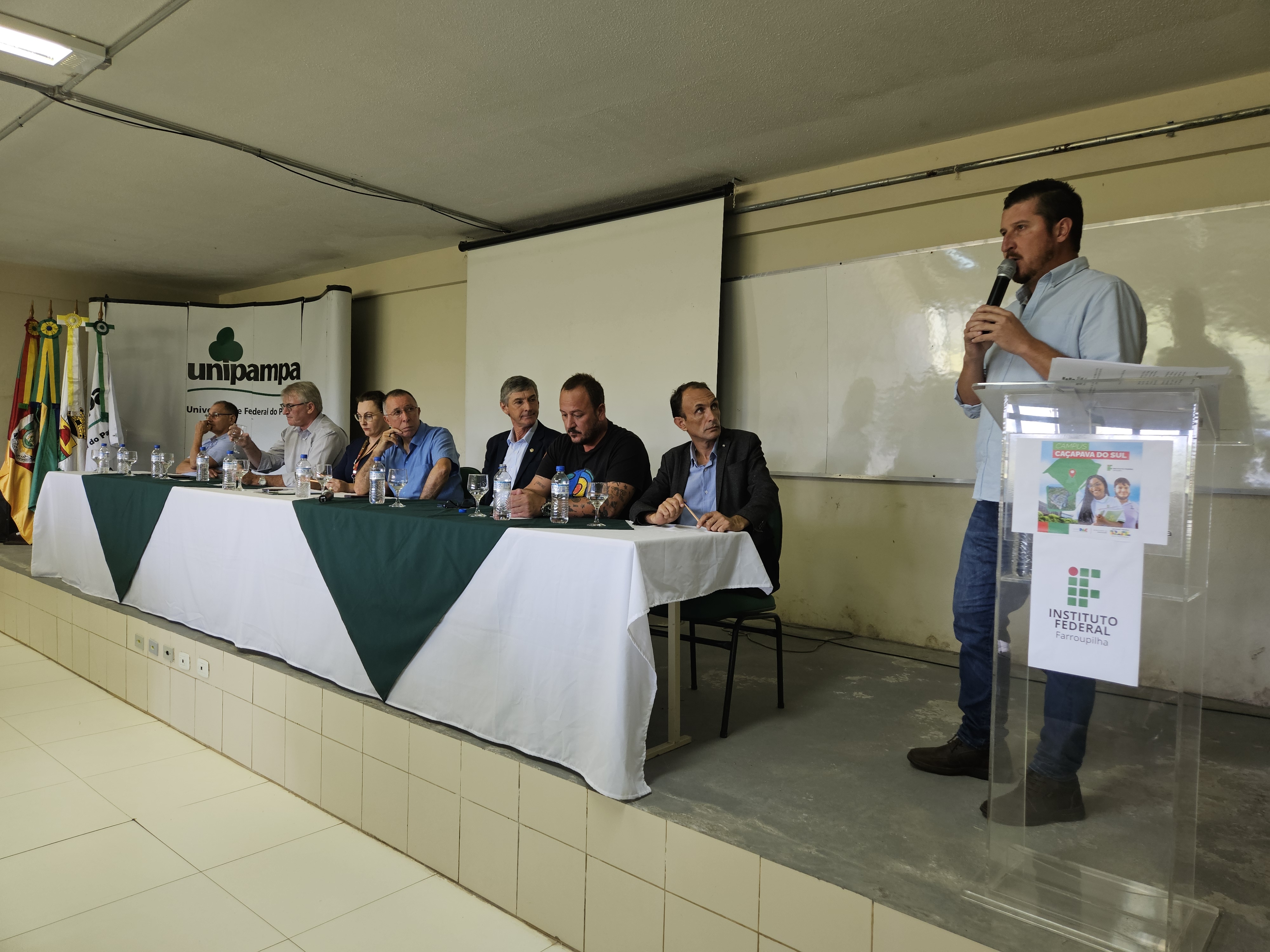 A cerimônia, presidida pela reitora do IFFar, professora Nídia Heringer, reuniu diversas autoridades, como o prefeito de Caçapava do Sul, Marcelo Spode; o presidente da Câmara de Vereadores de Caçapava do Sul, Antônio Almeida; o prefeito de Lavras do Sul, Renan Delabary; o vice-prefeito de Santana da Boa Vista, Paulo Sérgio Carvalho; o coordenador da Comissão de Implantação do Campus Caçapava do Sul do IFFar, Alberto Pahim Galli; e o diretor do Campus Caçapava do Sul da Unipampa, José Waldomiro Jimenez Rojas. Representando o legislativo estadual, esteve presente o deputado Valdeci Oliveira e, em nome do deputado federal Paulo Pimenta, participou o vereador Giordano Borba.