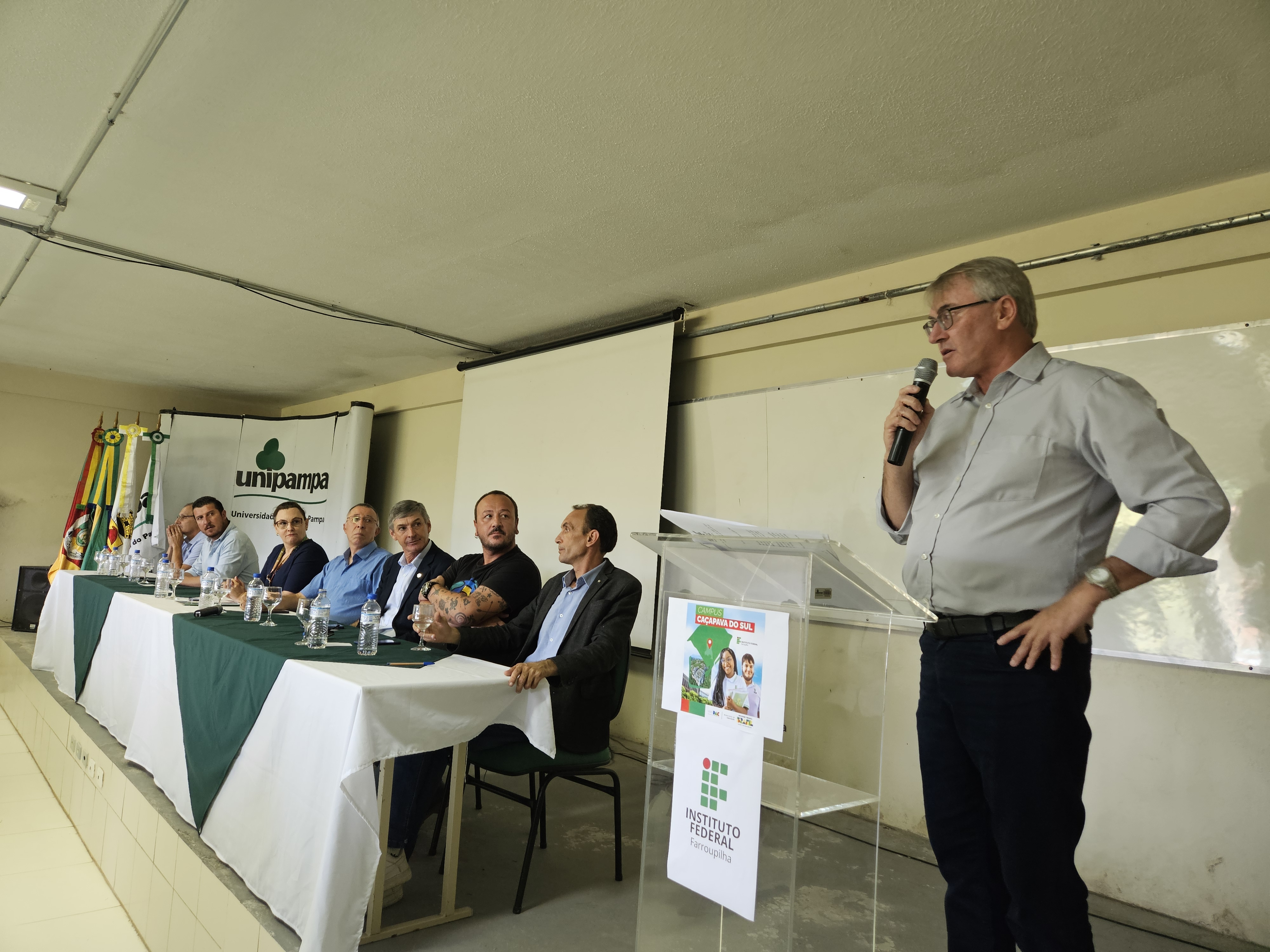 O prefeito Marcelo Spode destacou a relevância do novo campus para o futuro de Caçapava do Sul e região. Foto: ARP/IFFar