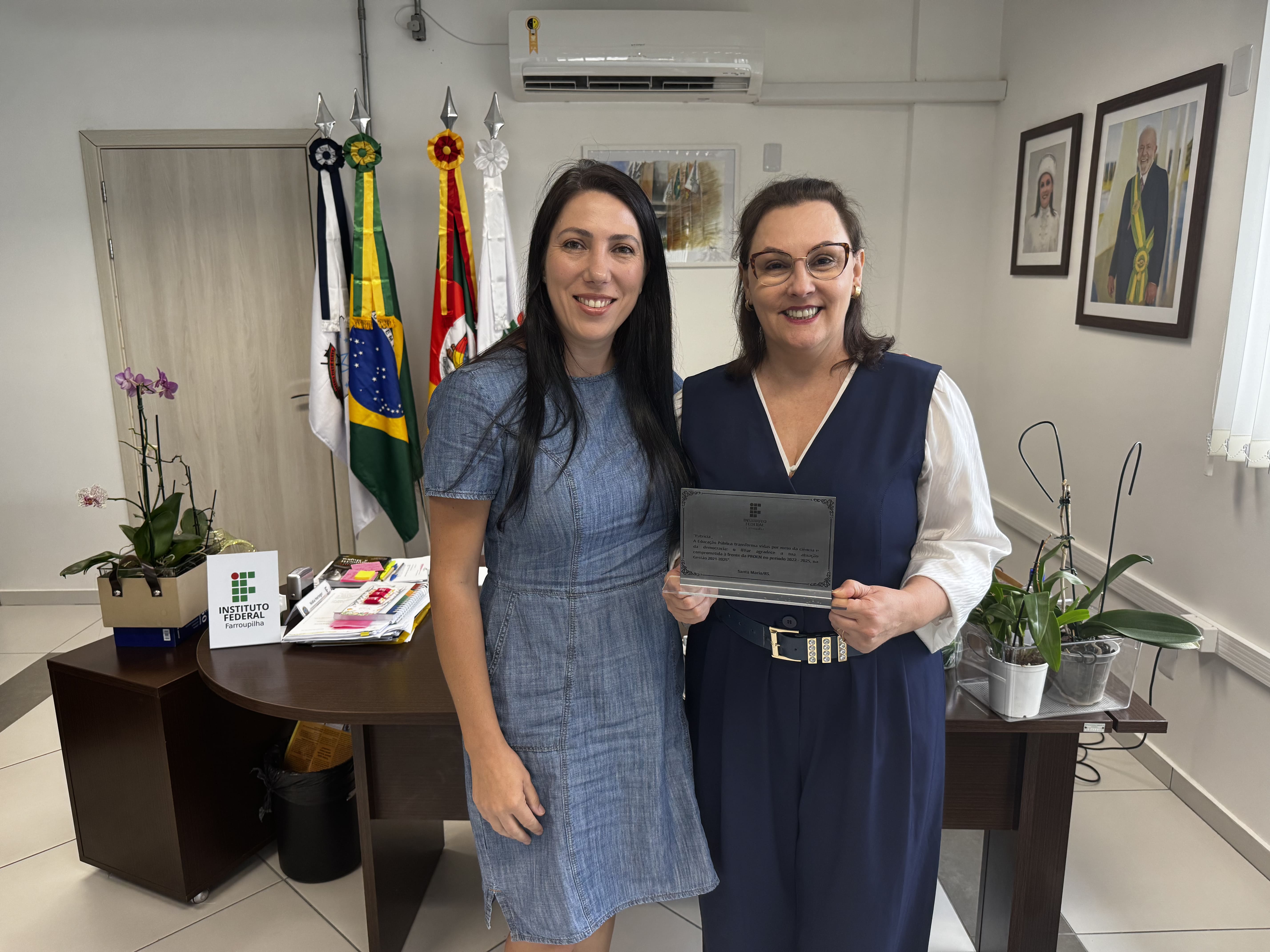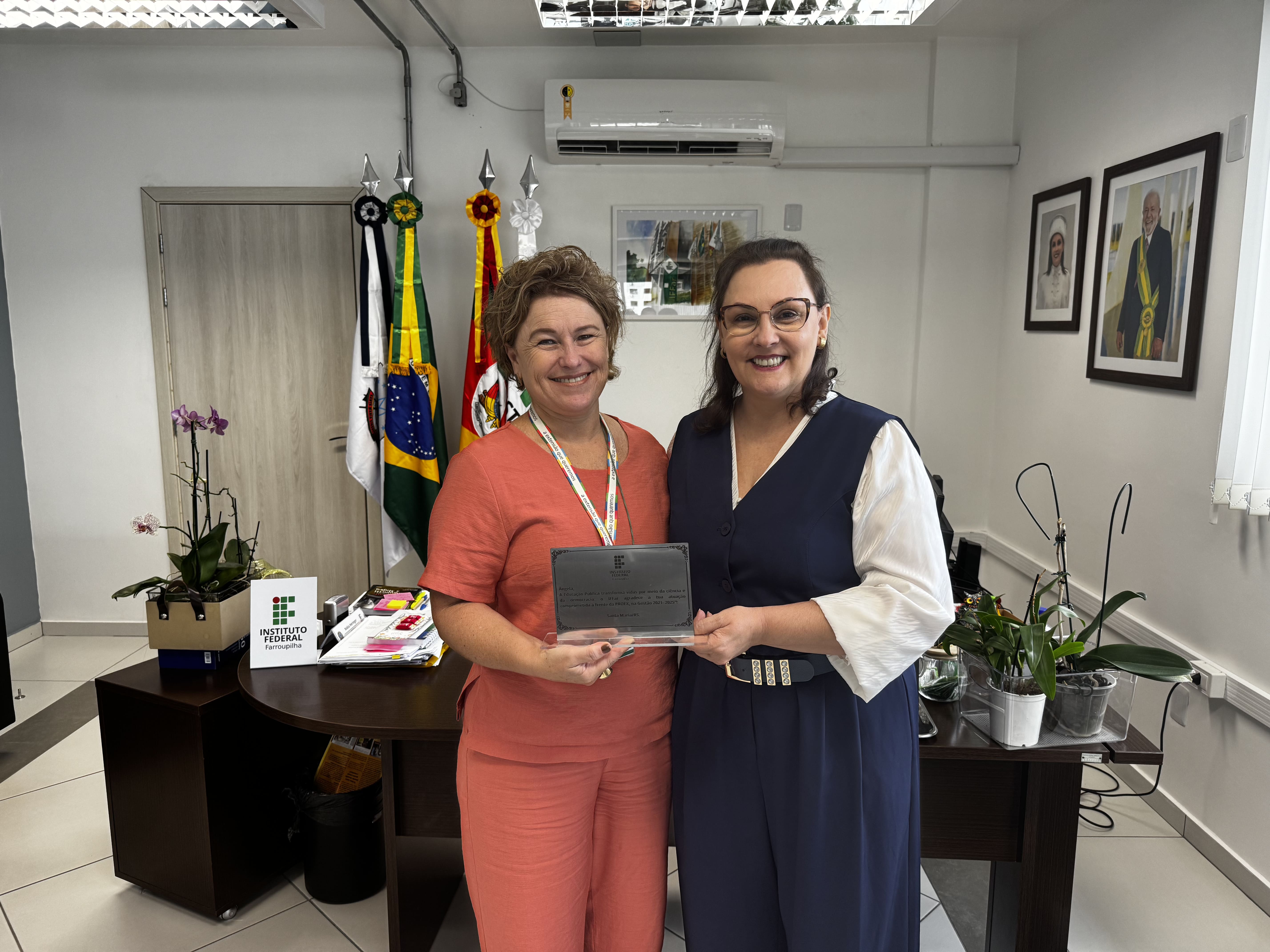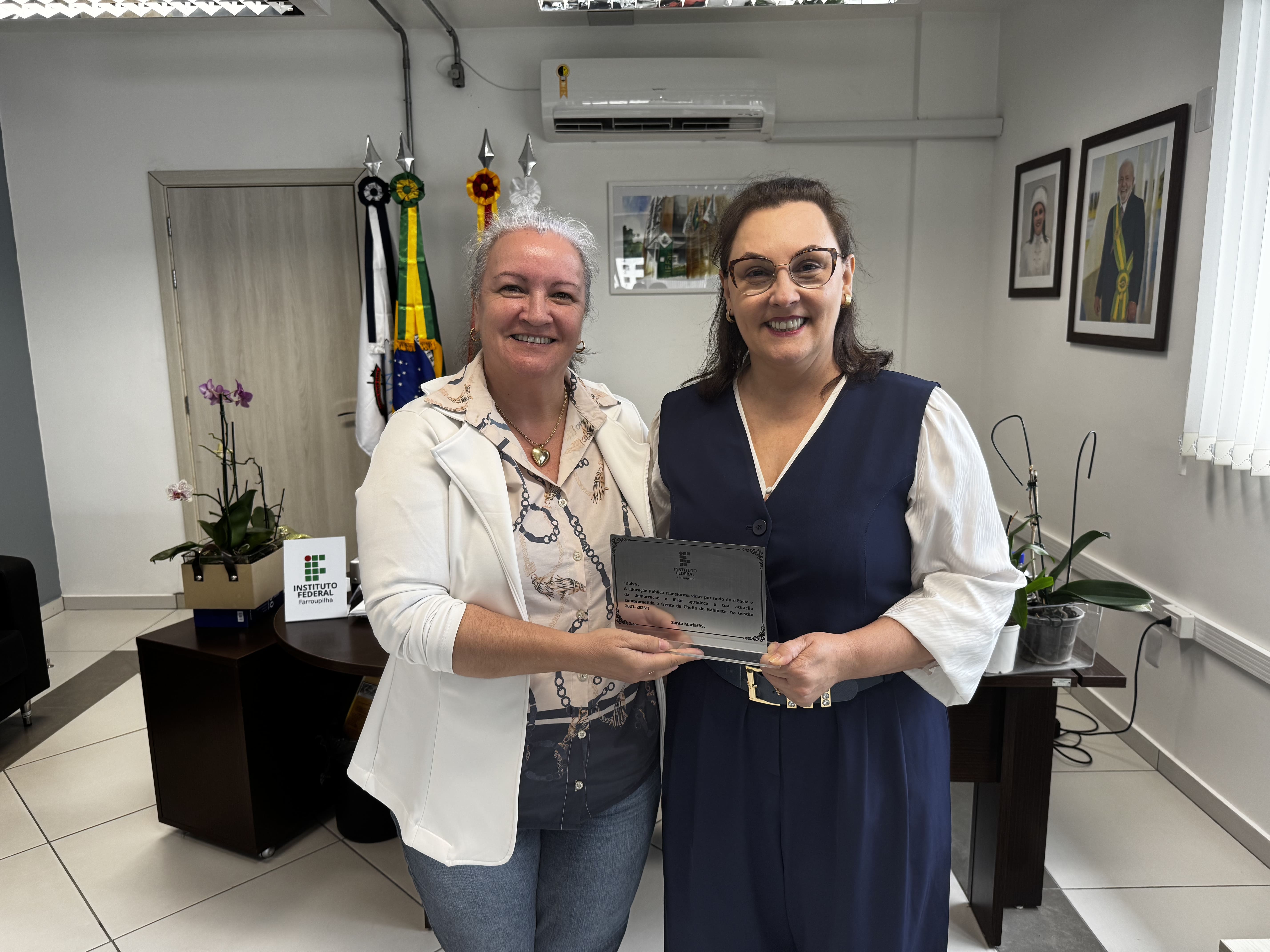 A homenagem ocorreu durante reunião no gabinete da reitora em Santa Maria. Foto: ARP/IFFar