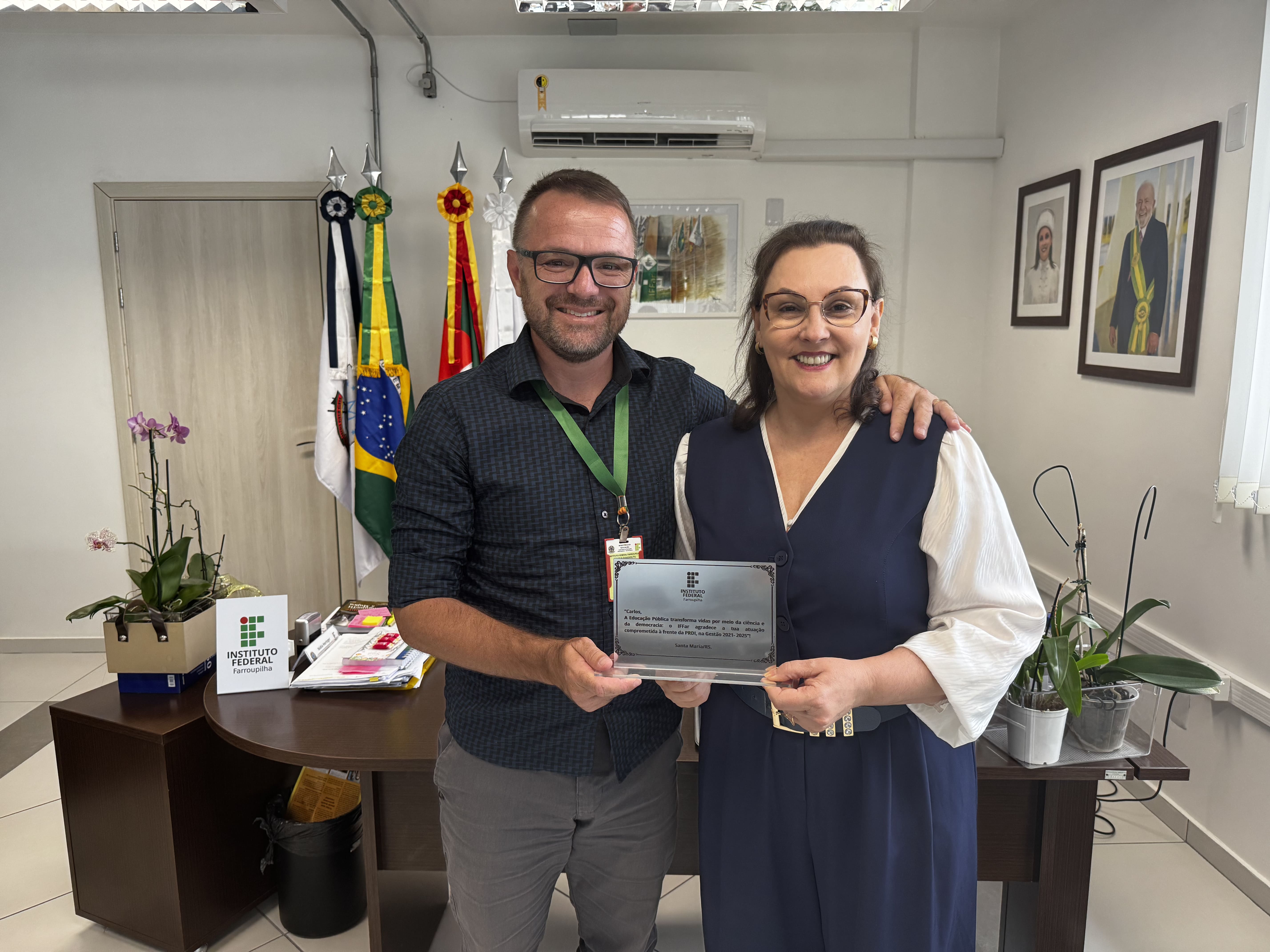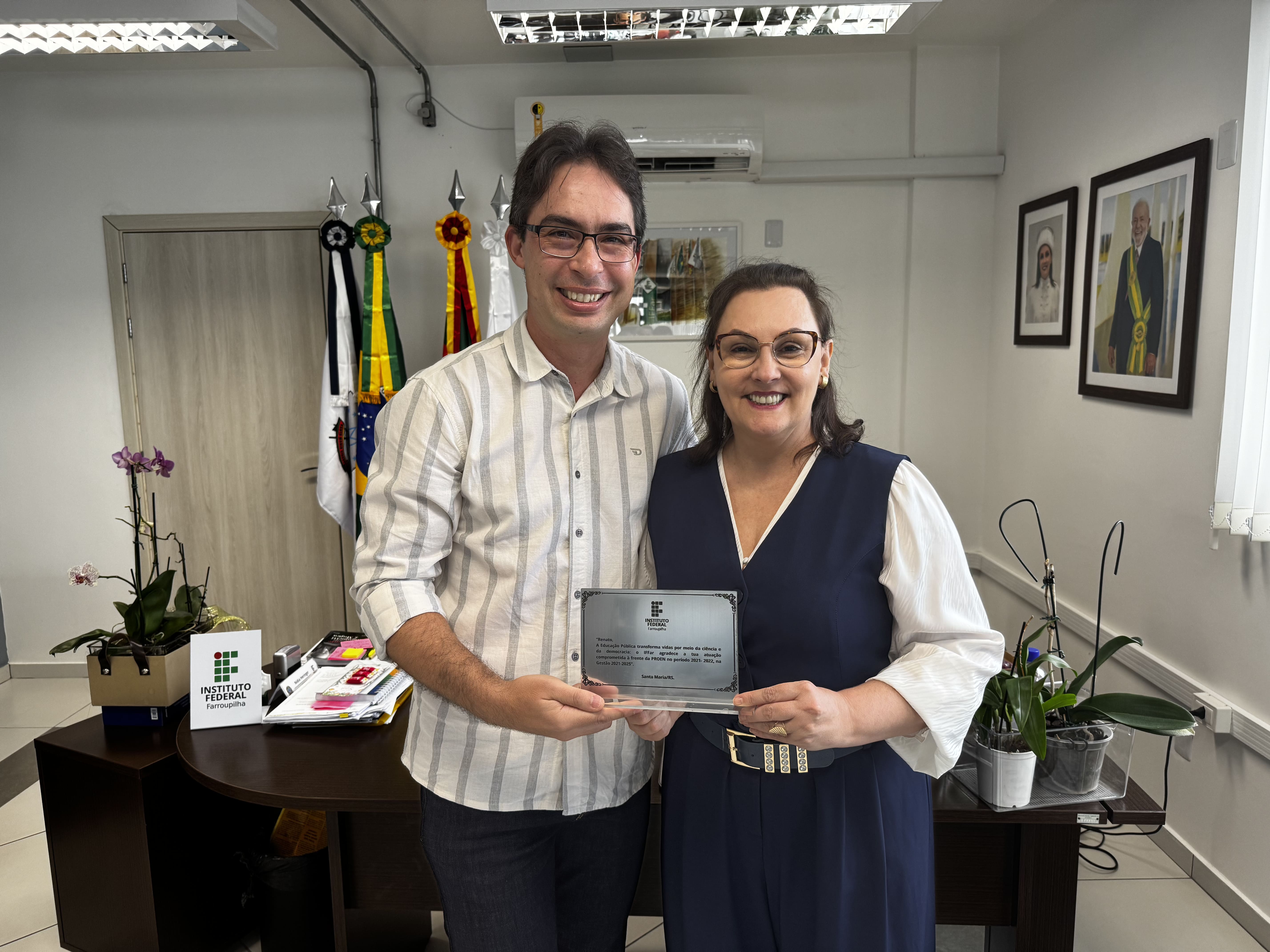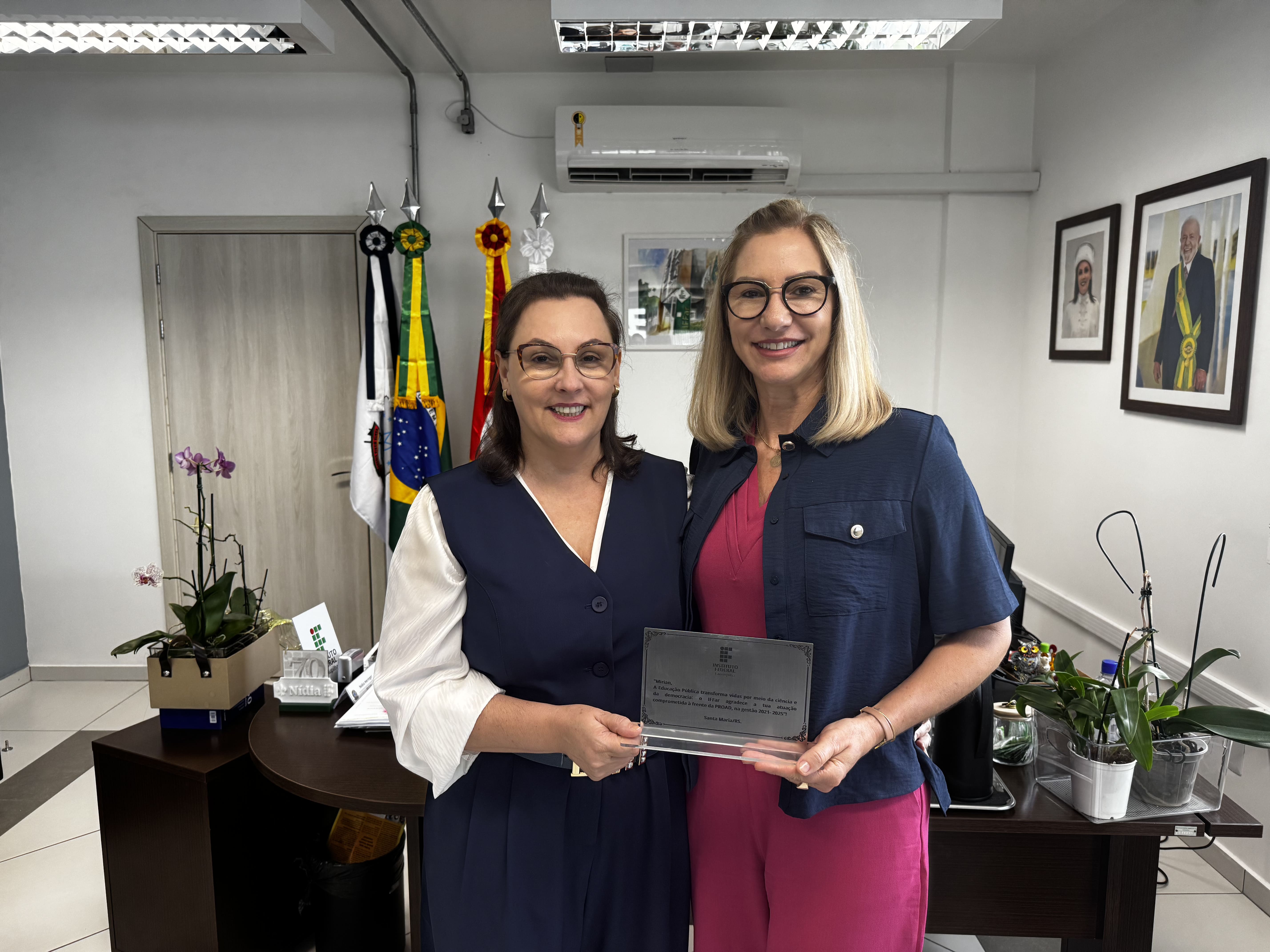 A homenagem ocorreu durante reunião no gabinete da reitora em Santa Maria. Foto: ARP/IFFar