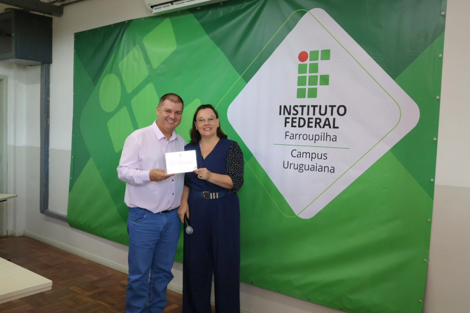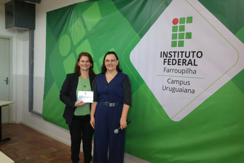 Foto: Ex-diretora-geral do Campus Alegrete, Ana Rita Parizi, recebe homenagem pelo período de gestão 2021-2025.