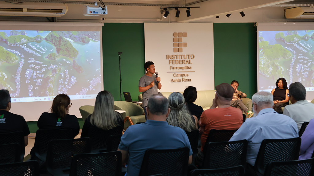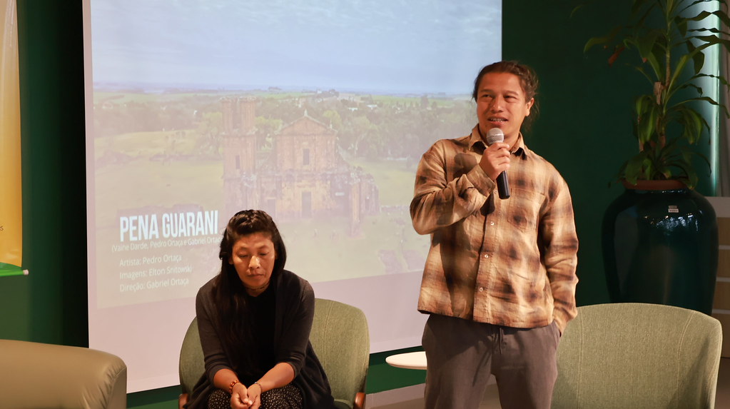 Encerrando a programação, a mesa dedicada às cosmovisões Guarani Mbya reuniu o professor e líder comunitário Anildo Romeu, da Aldeia Tekoá Pyau, e os artistas e intelectuais indígenas Ariel Kuaray Ortega e Patrícia Pará Yxapy, da Aldeia Tekoá Koenju de de São Miguel das Missõe. As lideranças destacaram a centralidade da oralidade na transmissão da história, refletiram sobre os desafios da autonomia territorial e denunciaram o silenciamento histórico que ainda marca a relação entre Estado, sociedade e povos indígenas. Também lembraram que todo o Rio Grande do Sul é território ancestral Guarani e que as comunidades enfrentam dificuldades para manter vivas suas práticas culturais diante da disputa por pequenos fragmentos desse espaço.