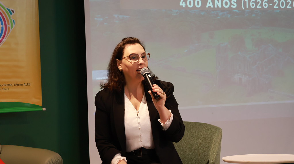 Na sequência, a segunda mesa contou com contribuições dos professores Leandro Goya Fontella e Max Roberto Pereira Ribeiro, com mediação da professora Maira Eveline Schmitz. As discussões abordaram o papel das mulheres Guarani na continuidade social após a expulsão dos jesuítas e a amplitude territorial indígena que antecede o atual desenho político-administrativo do Rio Grande do Sul.