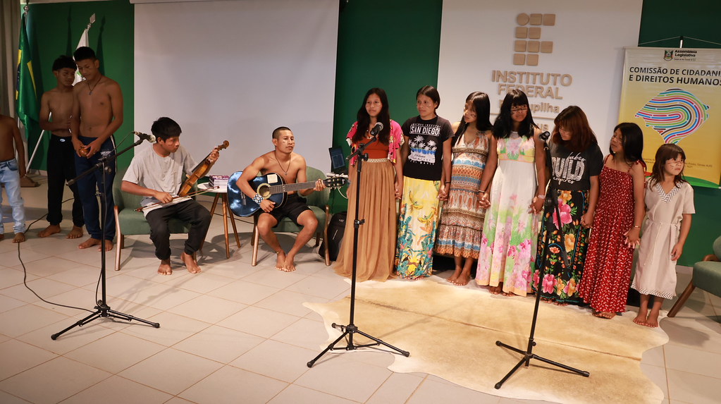 Coral Indígena Guarani Tekoá Pyau, de Santo Ângelo, durante apresentação no Seminário/Foto: Elisandro Coelho – Assessoria de Relações Públicas