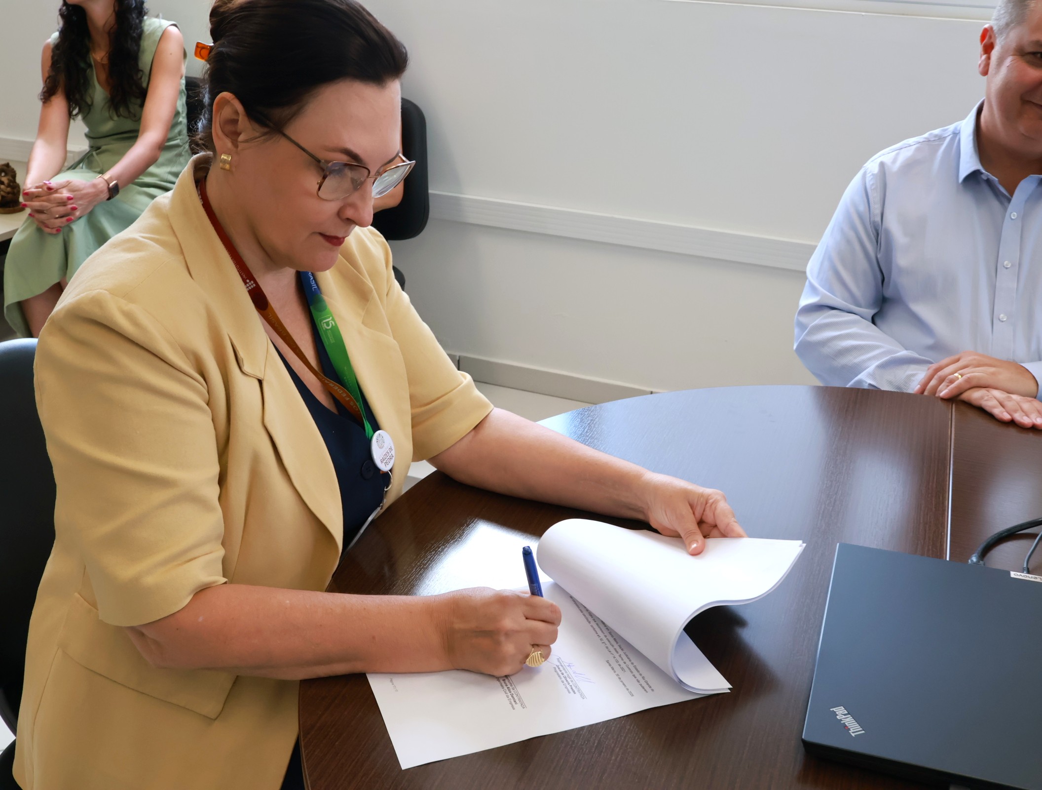 Além da reitora, professora Nídia Heringer, participaram do ato os pró-reitores de Administração, de Extensão e de Desenvolvimento Institucional, as pró-reitoras de Ensino e de Pesquisa, Pós-Graduação e Inovação, a Chefe de Gabinete da reitora, e a equipe da Pró-Reitoria de Administração.