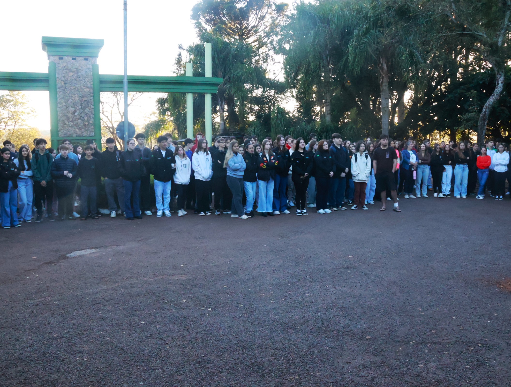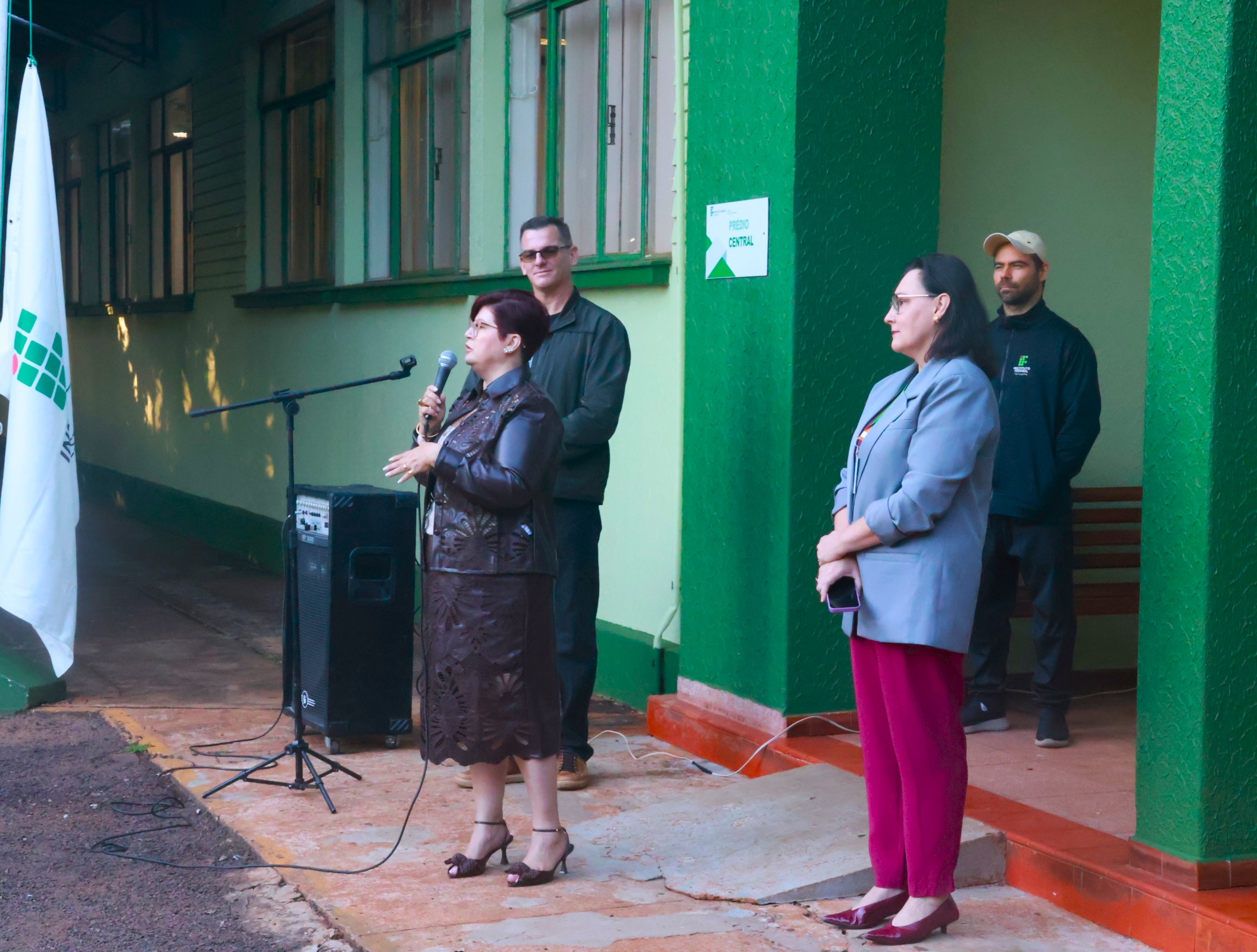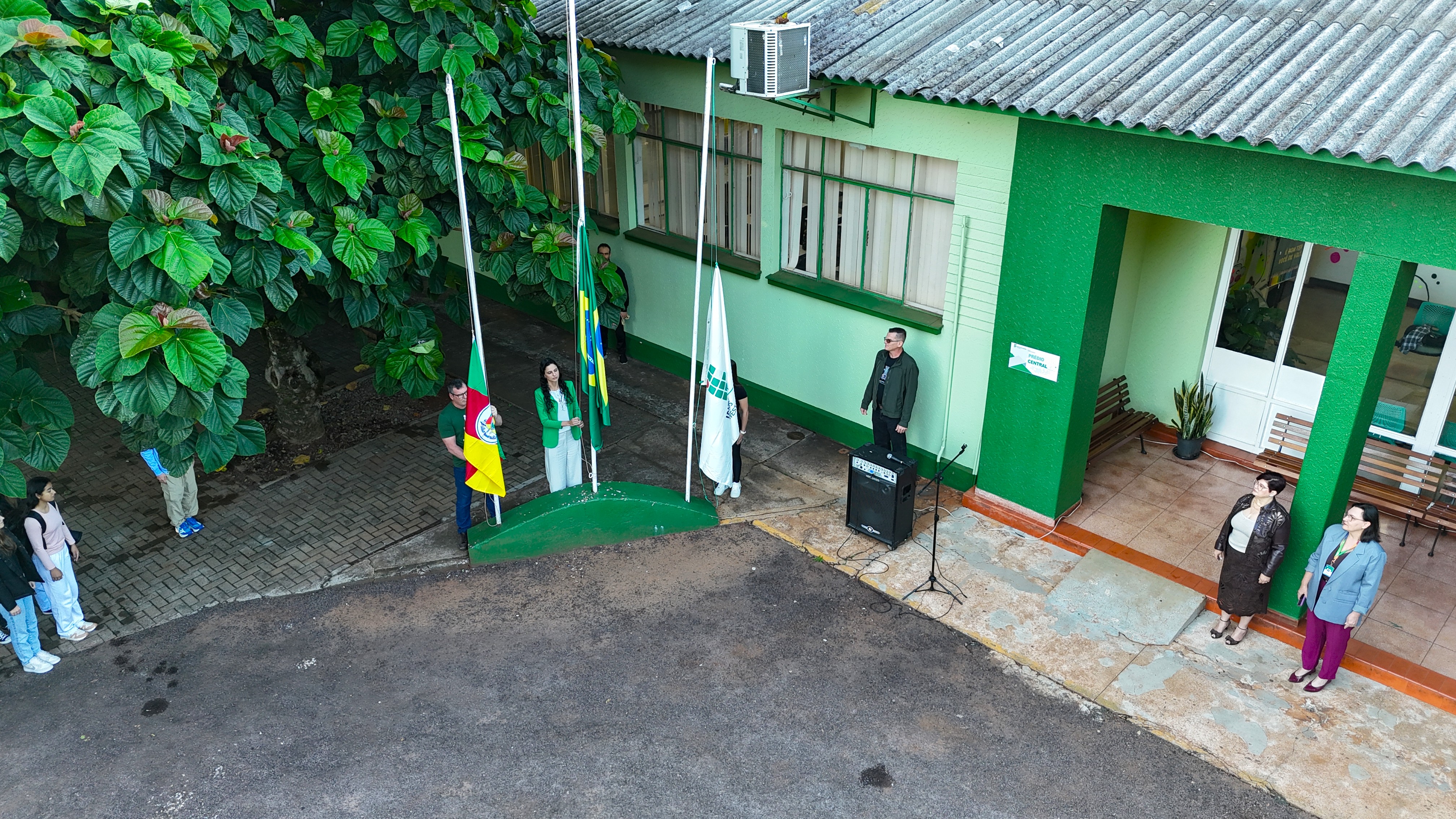 As comemorações iniciaram com um momento cívico realizado no hall de entrada do campus, que reuniu estudantes, servidores e gestores da instituição. Durante o ato, houve o hasteamento das bandeiras do Brasil, do Rio Grande do Sul e do IFFar, além do tradicional canto de parabéns em homenagem ao aniversário do campus.