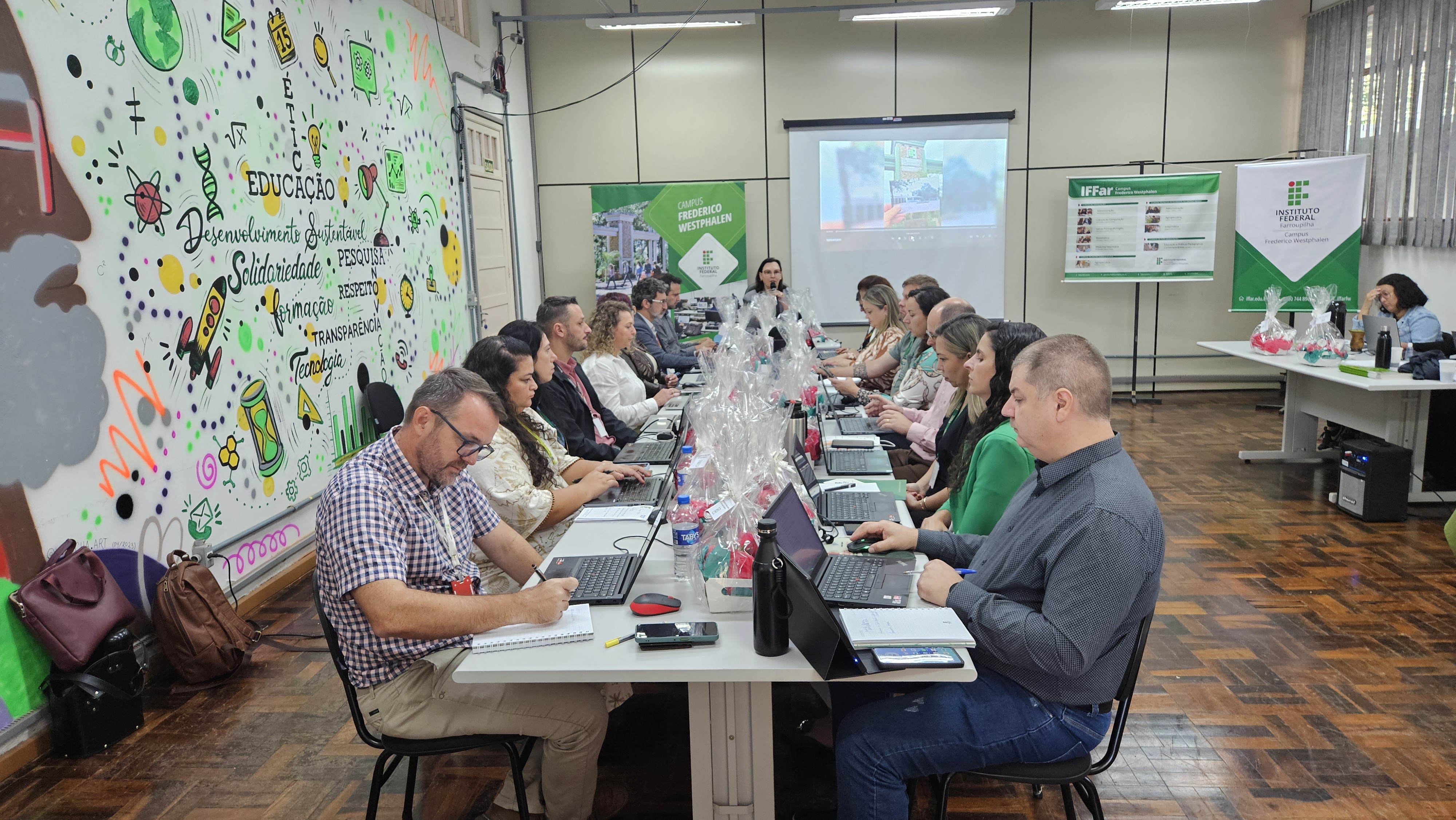 Durante o dia também aconteceu a 2ª reunião ordinária do Colégio de Dirigentes do IFFar (Codir), realizada de forma presencial, momento em que dirigentes da instituição estiveram reunidos para tratar de pautas institucionais.