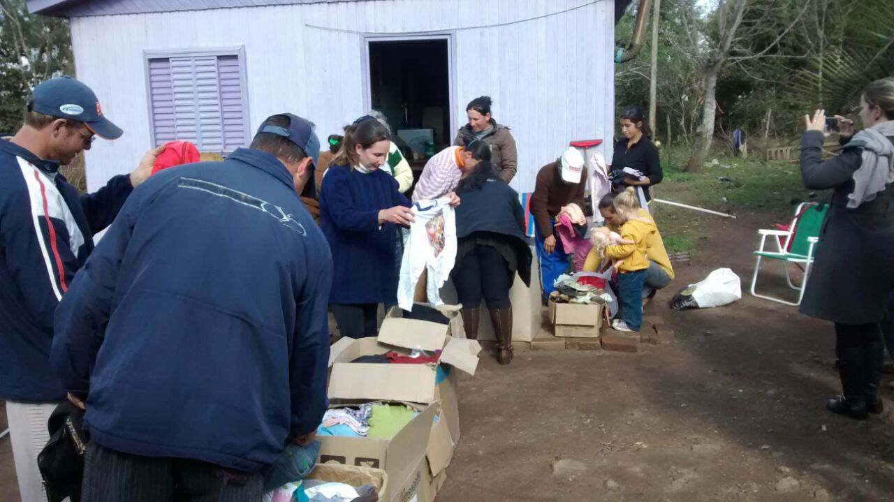 O IFFar - Campus Jaguari entregou, para famílias do Assentamento Santos Reis, localizado no interior do município de Jaguari, peças de roupas arrecadadas durante a Campanha do Agasalho 2016. A Campanha foi promovida pela Coordenação de Ações Inclusivas - CAI e Assistência Estudantil do campus, em parceria com a Associação Jaguariense de Apoio às Pessoas com Câncer - Mão Amiga e a Emater. De acordo com os envolvidos, o foco principal foi a arrecadação de roupas de inverno que abrangessem todas as idades e tamanhos, para que ninguém ficasse sem agasalhos neste frio. “E agradecemos a solidariedade de todos que colaboraram,. É motivo de muita alegria ajudar a quem precisa”, ressaltou o grupo.