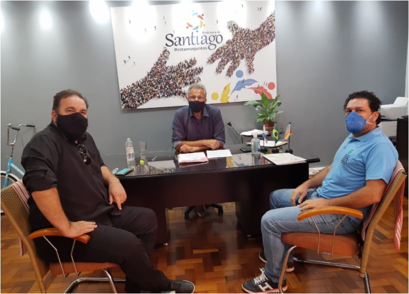 Ocorreu na tarde do dia 25 de fevereiro de 2021, uma agenda oficial entre o IFFar e a SEDUC/RS. Por intermédio do Prof. Marco Antonio Malheiros, e com a mediação do Prefeito Municipal de Santiago, RS, Tiago Gorski Lacerda, o IFFar representado pelo Prof. Ricardo Antonio Rodrigues, Diretor Geral do Campus Jaguari e pelo Coordenador do Centro de Referência de Santiago, Prof. Marco Antonio Malheiros reuniram-se com o Secretário de Educação do Estado do Rio Grande do Sul, Faisal Karam. Entre os vários assuntos de pauta foram apresentados ao Secretário Faisal os dados sobre os atuais cursos ofertados no IFFar Campus Jaguari e no Centro de Referência de Santiago. Ficou acordada a continuidade da cedência do prédio da Escola João Eduardo Witt Schmitz para o funcionamento do Centro de Referência do IFFar em Santiago, e a apresentação do planejamento do IFFar Campus Jaguari, com dados e informações para a abertura de novos cursos em diferentes níveis para melhor atender a comunidade local e regional de Santiago e Vale do Jaguari. Prof. Marco Malheiros aproveitou para formalizar o encaminhamento da renovação do Acordo de Cooperação Técnica entre o IFFar e a SEDUC/RS. Ficou acordada a ampliação de ações em parceria para a formação de professores na Educação Básica, com ênfase na formação técnica e tecnológica, e o fortalecimento das ações de cooperação com entre as Escolas Técnicas vinculadas à SEDUC/RS, as escolas da Rede Municipal de Santiago e o IFFar. A ideia é a implementação de políticas entre as instituições, tanto no Vale do Jaguari, como nas demais regiões atendidas pelo IFFar, para fomentar o desenvolvimento local e regional pelo viés do conhecimento em sintonia com as demandas da cadeia produtiva. Entre essas iniciativas está o Curso de Formação de Professores ofertados pelo IFFar, via EaD, que iniciará no segundo semestre de 2021, sediado no Polo do Centro de Referência em Santiago.