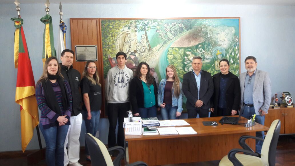 Na manhã de ontem, o Prefeito Municipal, Sedinei Rodrigues dos Santos, recebeu em seu Gabinete, o Presidente da Comissão Mista de Gestão do IFFar - Campus Jaguari, Carlos Eugênio Balsemão, a presidente da Associação Cultural Italiana do Vale do Jaguari, Karine Minuzzi, alguns integrantes da associação, e os intercambistas, os alunos Vandré Sonza, Flavia Ferrari dos Santos e Lucilene dos Santos. No ano passado, nós recebemos estudantes e professores italianos e, agora chegou a vez dos nossos alunos e servidor irem a Mirano. Sob a coordenação do servidor André de Lima Sabino, que também irá participar do intercâmbio, eles irão realizar um programa de atividades organizadas pela Escola 8 Marzo-Klorenz di Mirano na região do Veneto, Itália, visitando propriedades de agricultura familiar, objetivando avaliar as semelhanças e diferenças com a agricultura familiar de nosso município e também conhecer uma tecnologia de cobertura de vinhedos visando a proteção contra venenos de outras culturas, como a soja por exemplo. O tema é bastante atual e uma grande preocupação dos nossos produtores locais. O projeto prevê, ainda, que na volta seja realizada uma parte experimental na área do Campus Jaguari para avaliar os resultados, com acompanhamento dos professores da Itália, através de videoconferências.