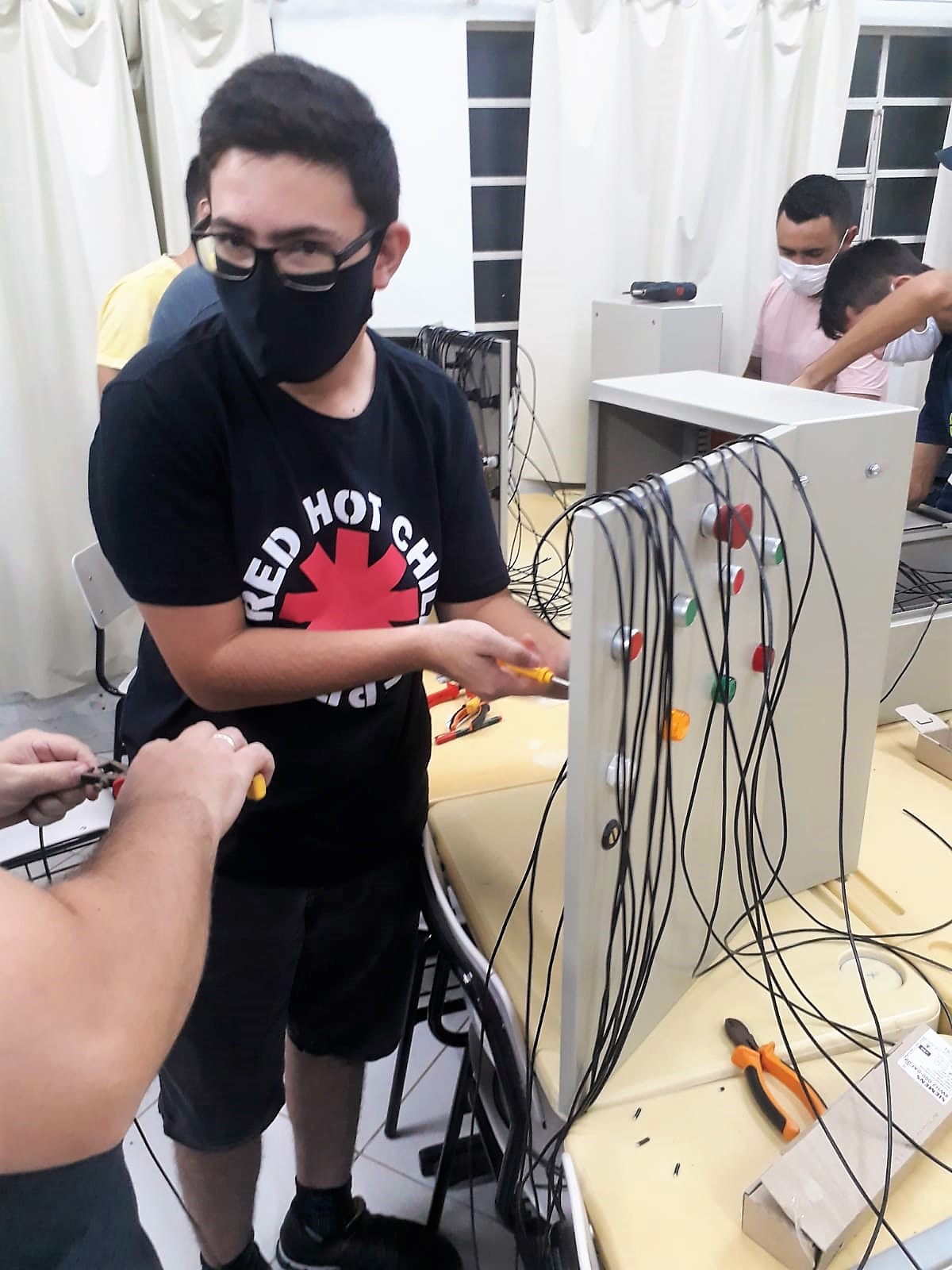 Foto: Alunos em aula prática no Laboratório de Instalações Elétricas